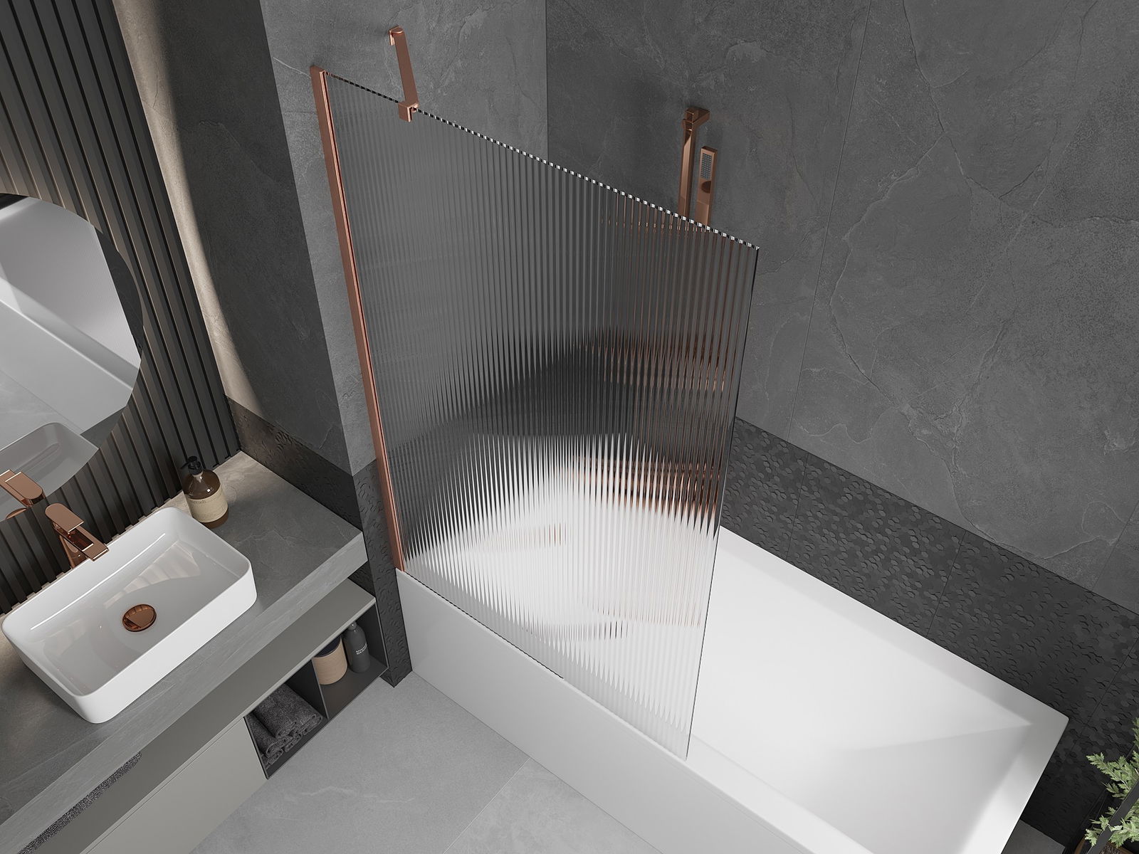 Mexen Next 1-wing Bath Screen 100 x 150 cm, Stripes, Brushed Copper - 895-100-000-00-09-65