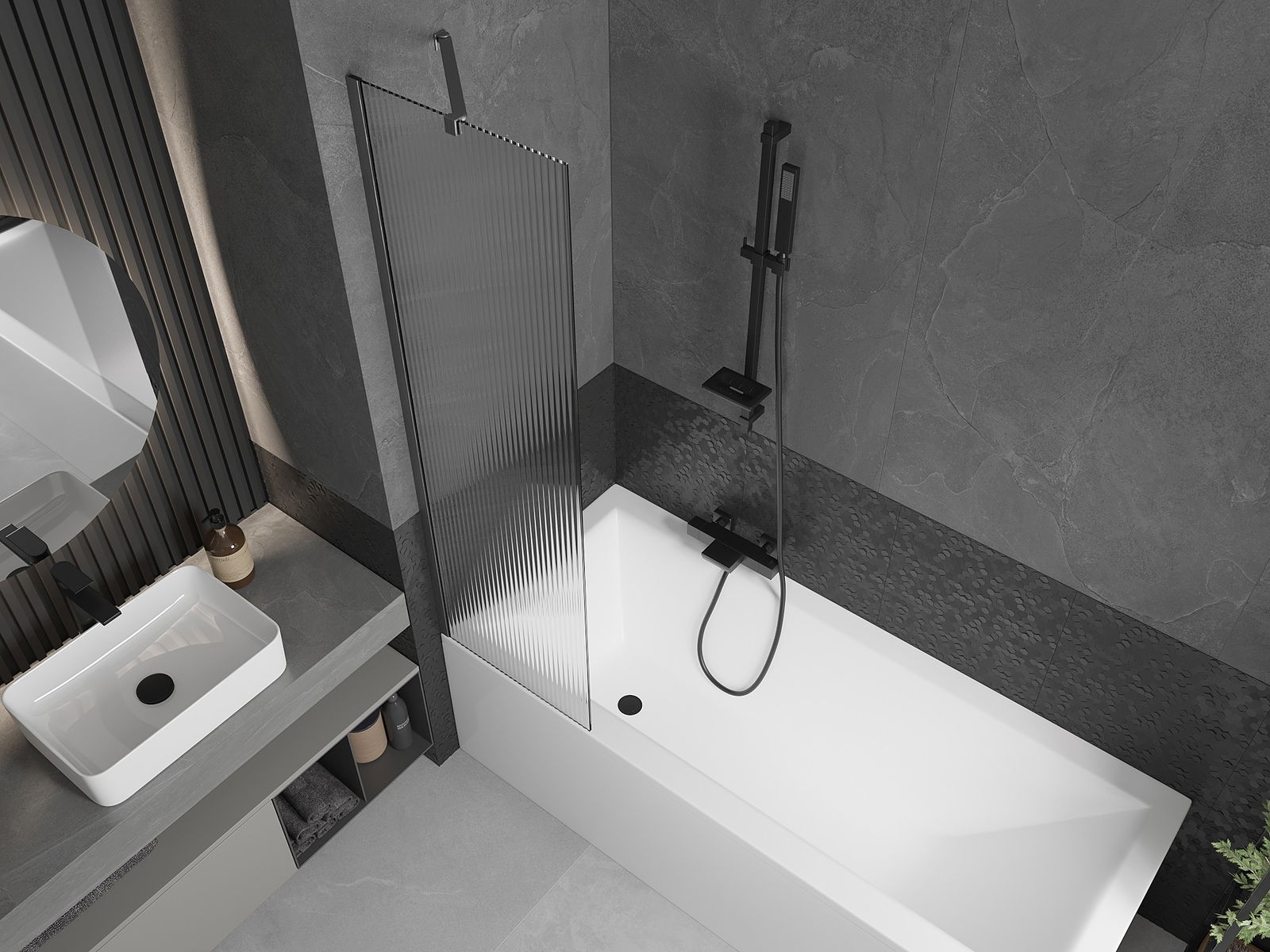 Effective protection against water spilling during bathing. The screen has seals that perfectly fit the glass surface and the edge of the bathtub. A functional solution ensuring safety and easy maintenance of cleanliness.