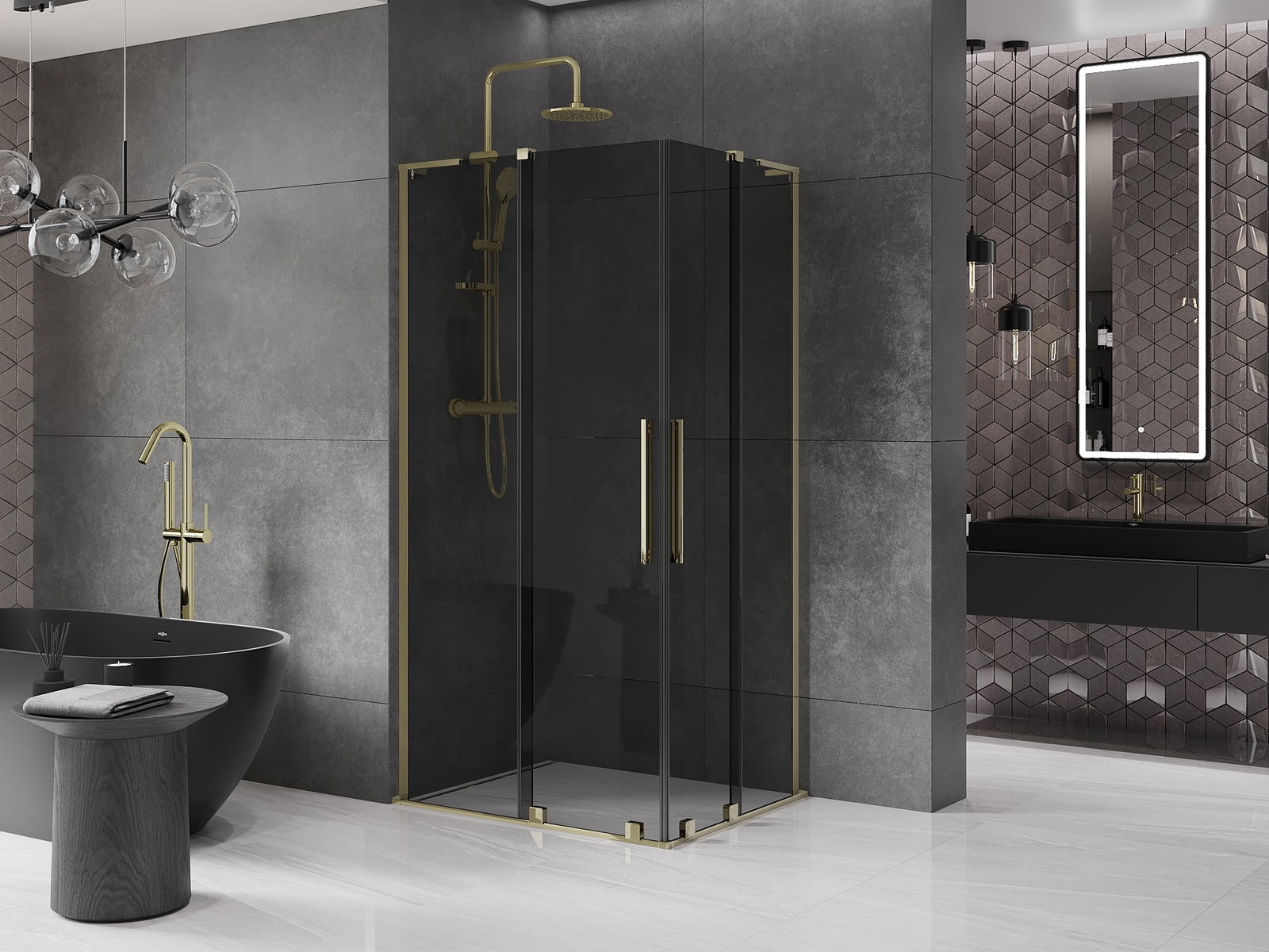 Mexen Velar L Duo sliding shower cabin 90 x 80 cm, graphite, gold - 871-090-080-02-43-50