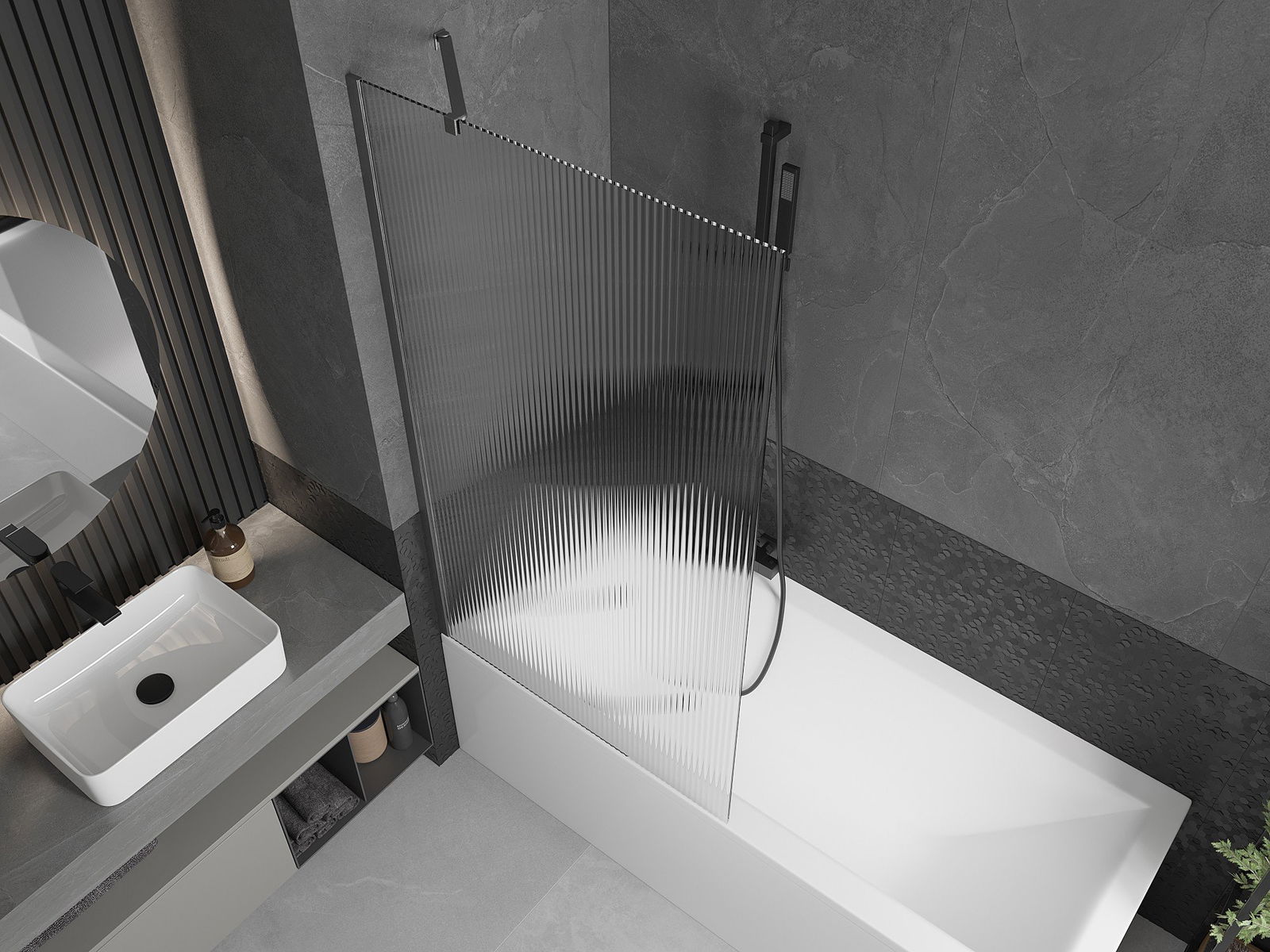 Mexen Next 1-wing Bathtub Screen 90 x 150 cm, Stripes, Brushed Gun Gray - 895-090-000-00-09-66