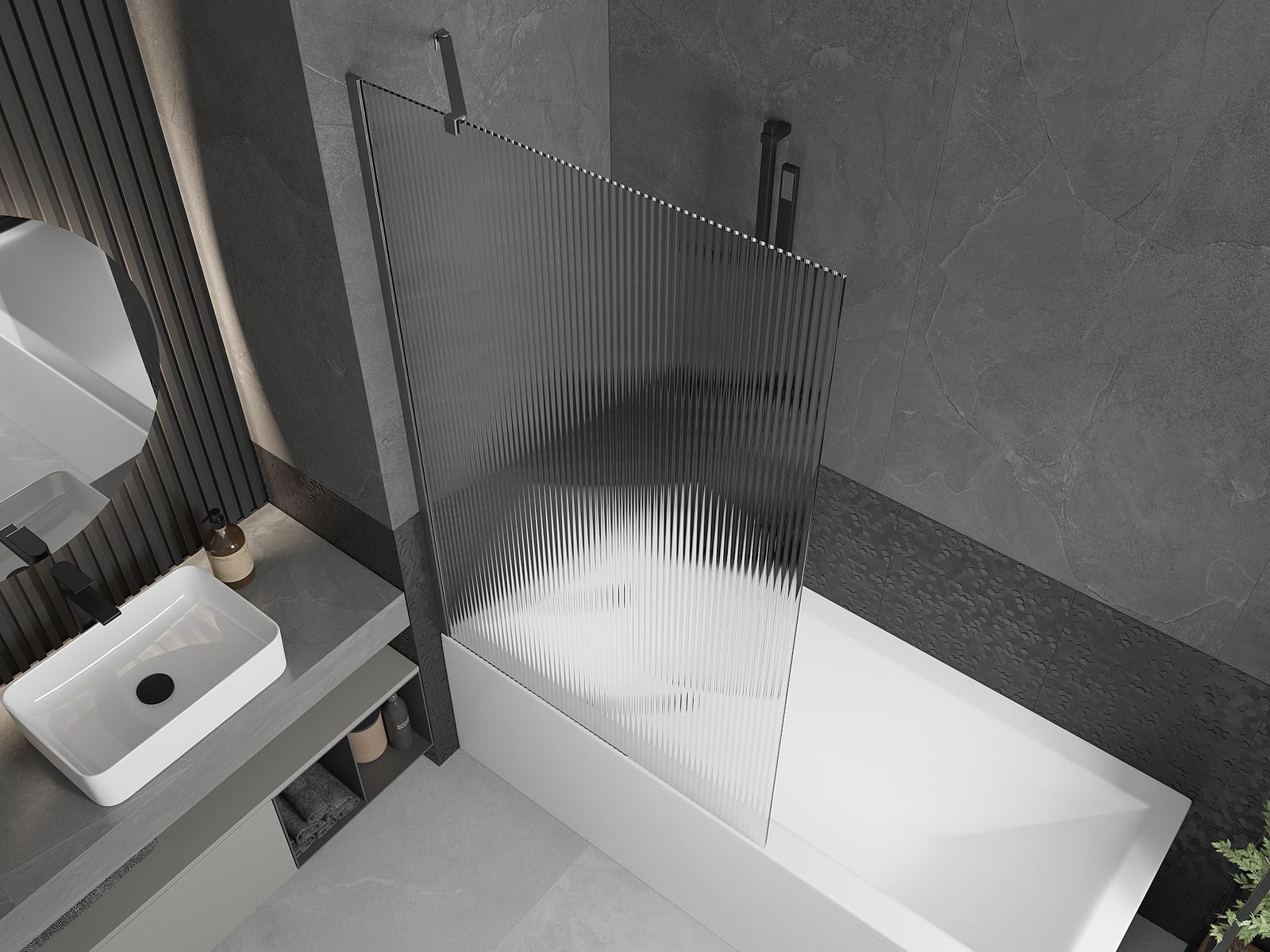 Mexen Next 1-fold Bath Screen 100 x 150 cm, Stripes, Brushed Gun Gray - 895-100-000-00-09-66