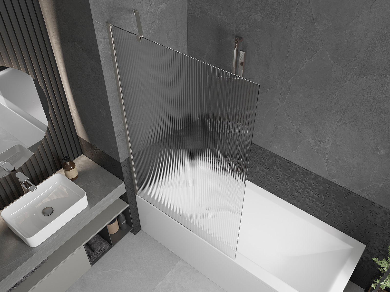 Effective protection against water spilling during bathing. The screen has seals that perfectly fit the glass surface and the edge of the bathtub. A functional solution ensuring safety and easy maintenance of cleanliness.