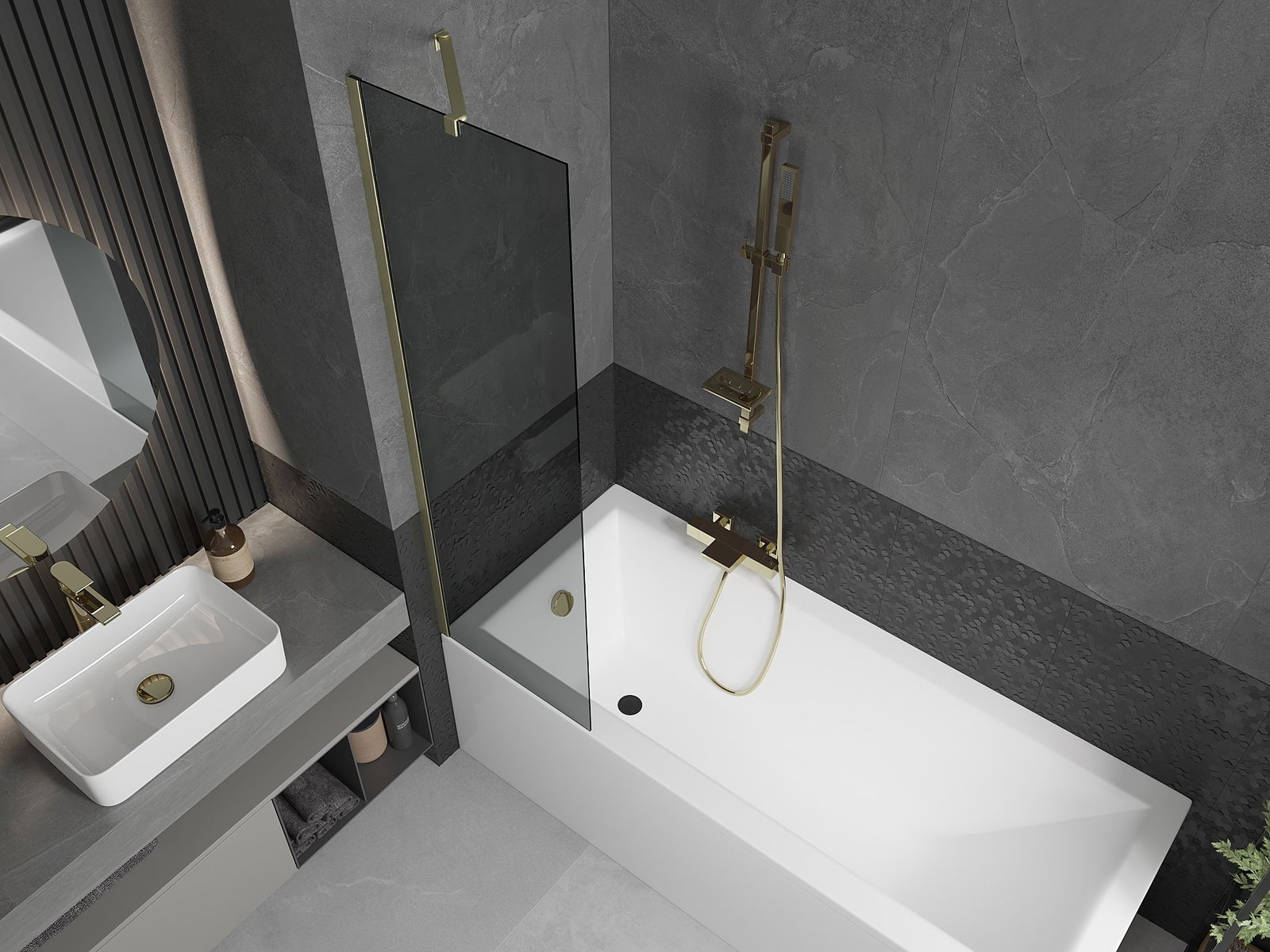 Mexen Next 1-panel bath screen 50 x 150 cm, graphite, brushed gold - 895-050-000-00-40-55