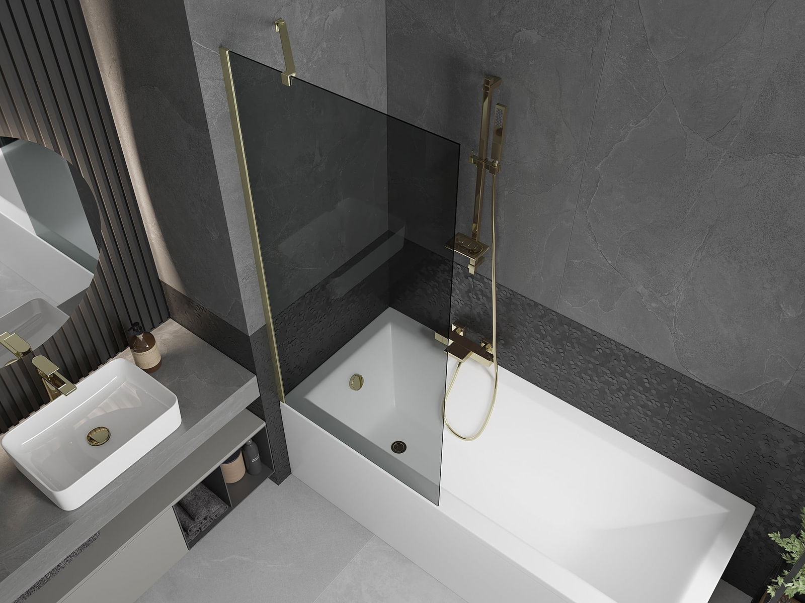 Mexen Next 1-Panel Bath Screen 80 x 150 cm, Graphite, Brushed Gold - 895-080-000-00-40-55