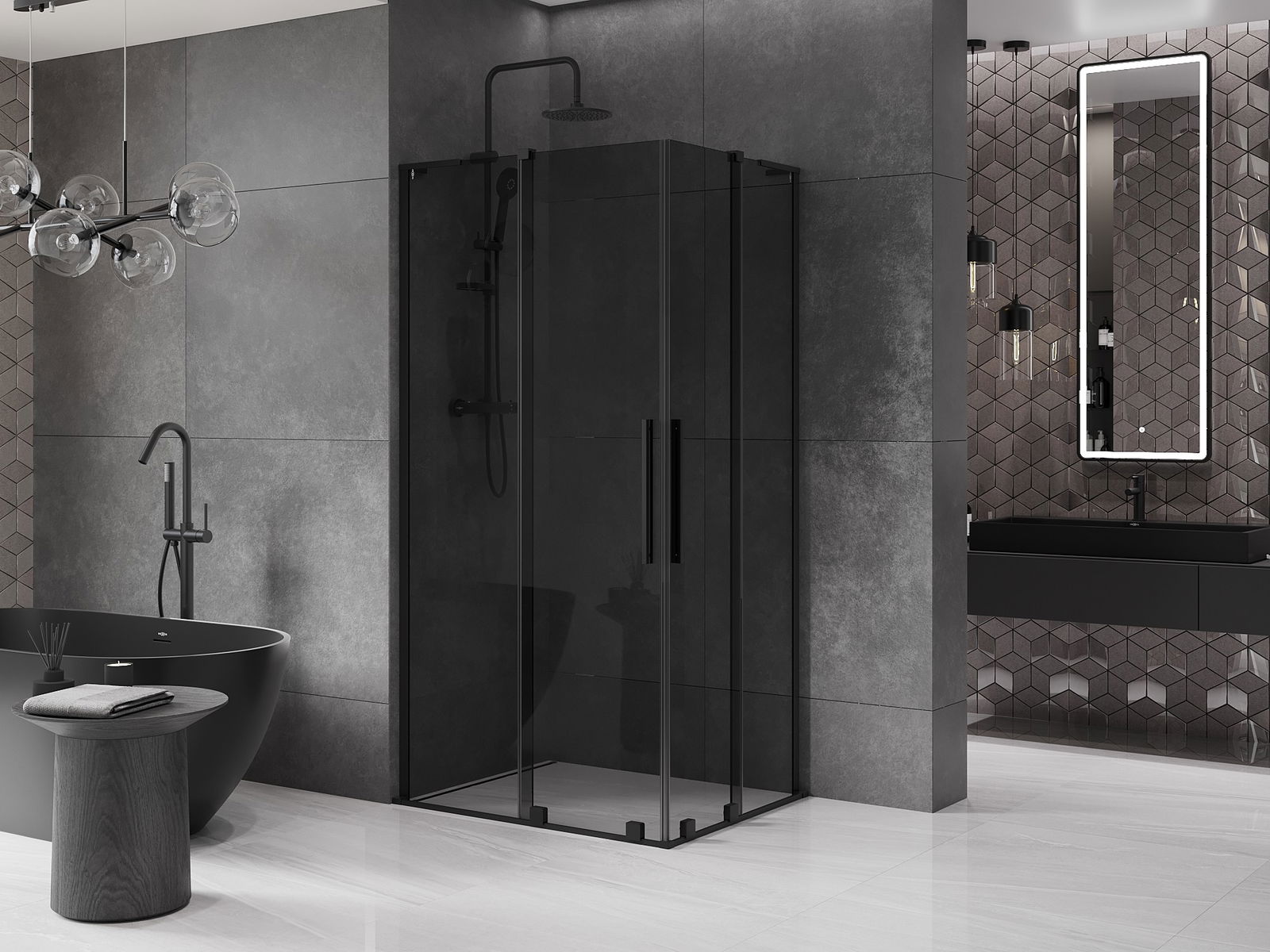 Mexen Velar L Duo sliding shower enclosure 90 x 80 cm, graphite, black - 871-090-080-02-43-70