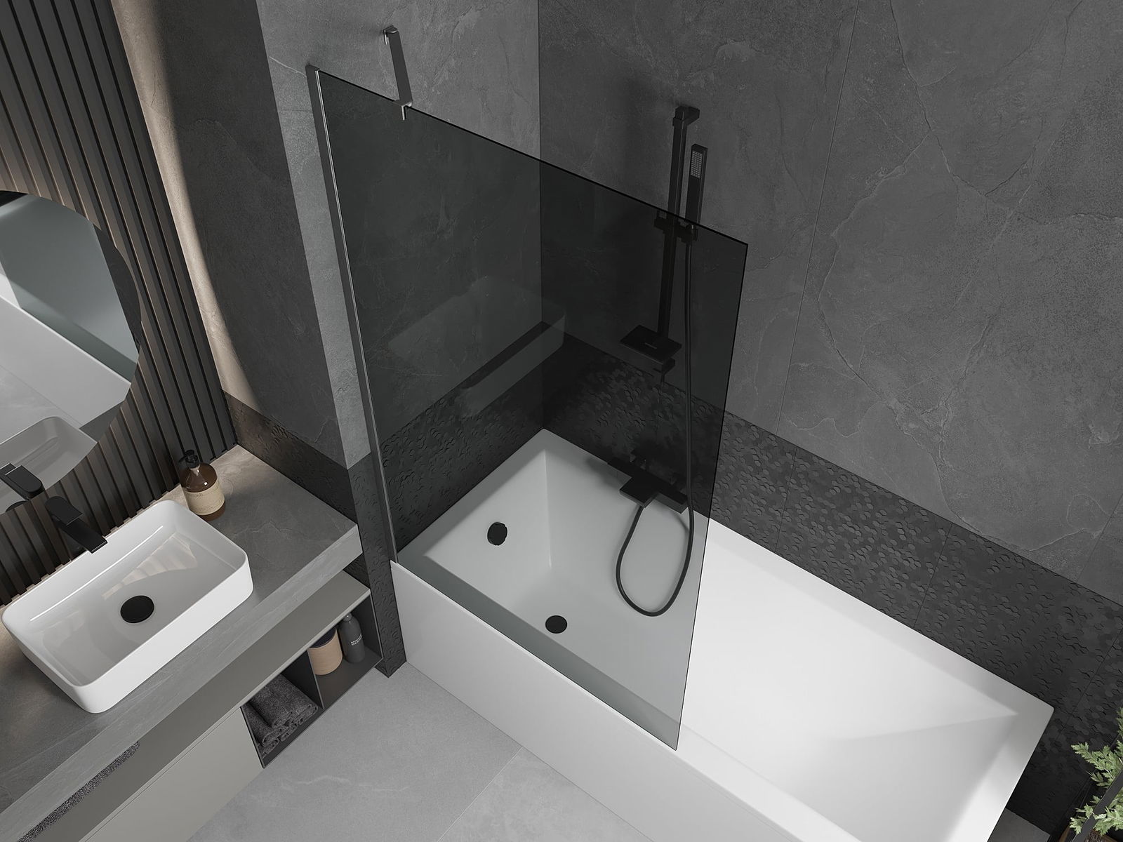 Mexen Next 1-wing bath screen 100 x 150 cm, graphite, brushed gun gray - 895-100-000-00-40-66