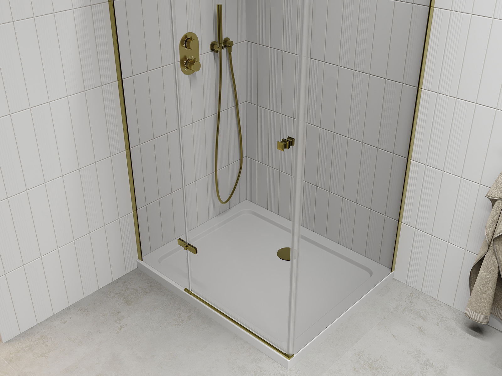 Mexen Roma hinged shower cabin 100 x 90 cm, transparent, gold + Flat tray - 854-100-090-50-00-4010