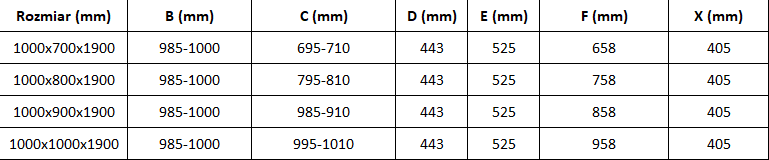 Shower cabin technical data: