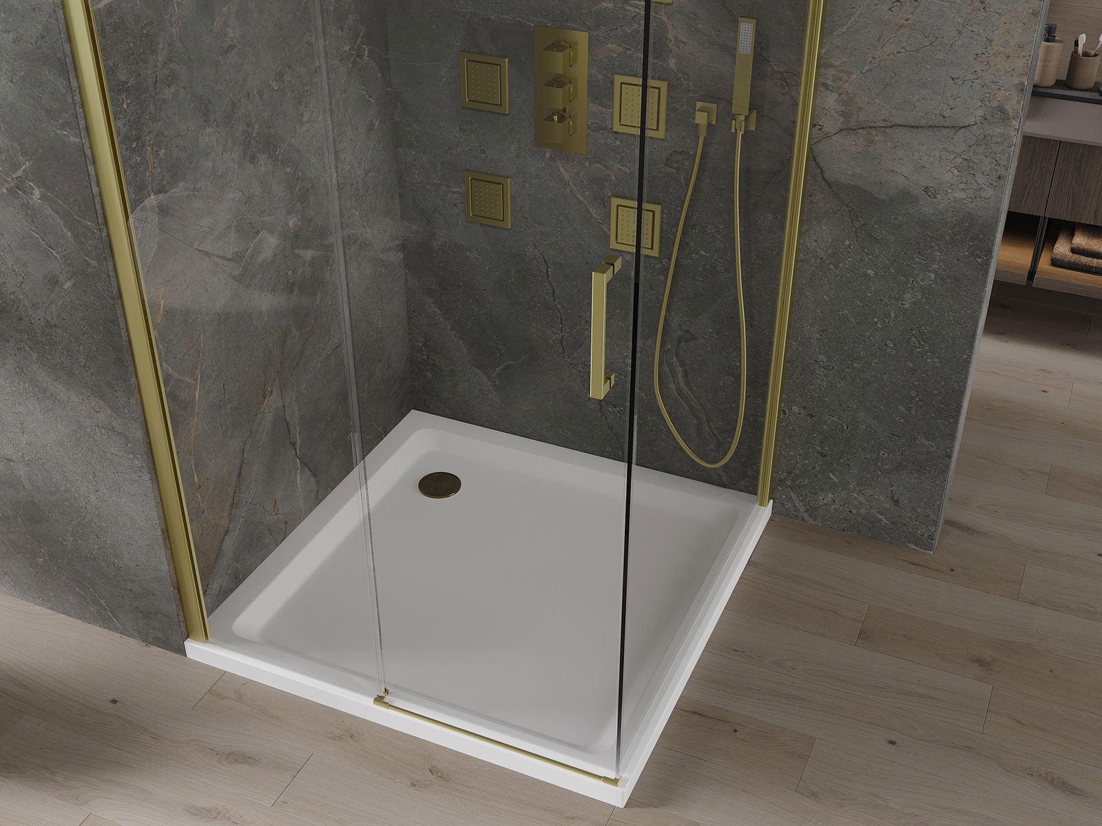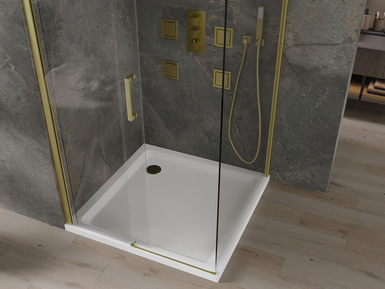 Mexen Omega sliding shower enclosure 100 x 100 cm, transparent, gold + Flat tray - 825-100-100-50-00-4010