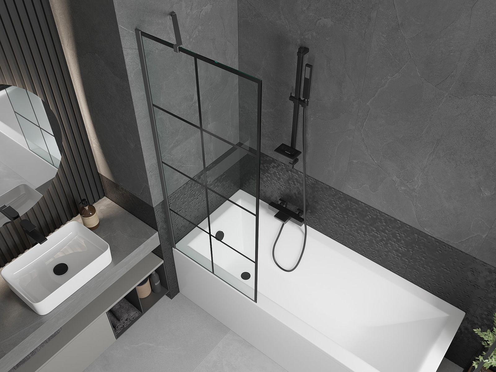 Mexen Next One-Panel Bath Screen 70 x 150 cm, Black Grid, Gun Metal - 895-070-000-00-77-95