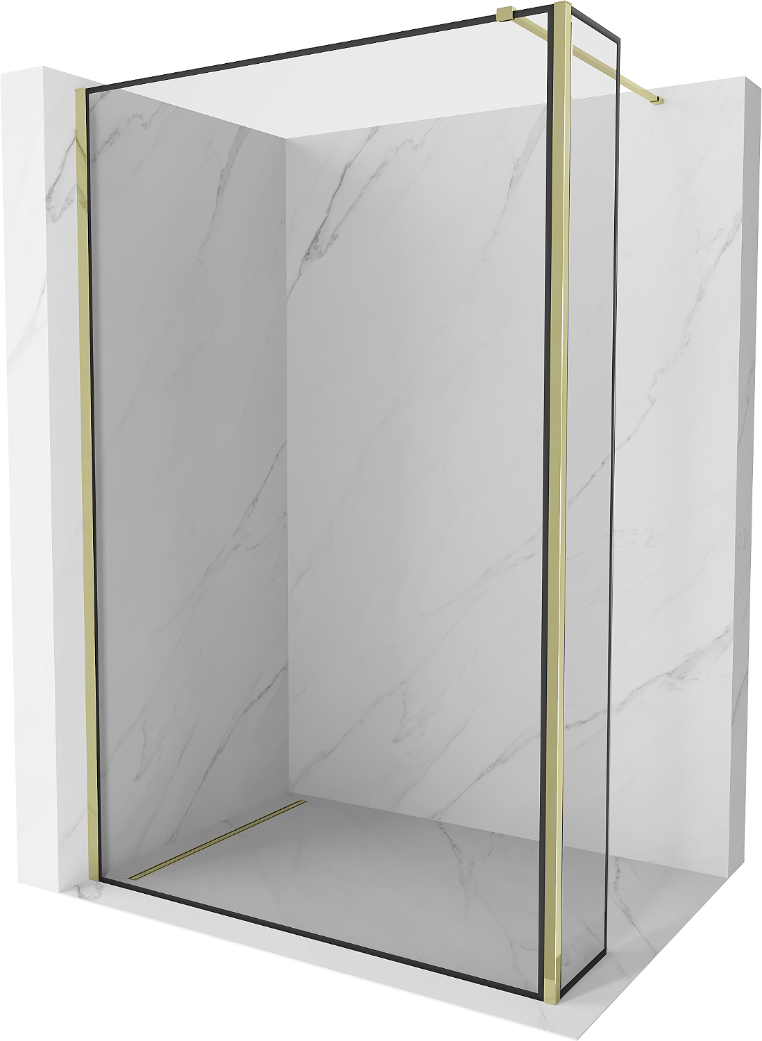 Mexen Kioto shower wall Walk-in 110 x 30 cm, black frame, gold - 800-110-212-50-70-030