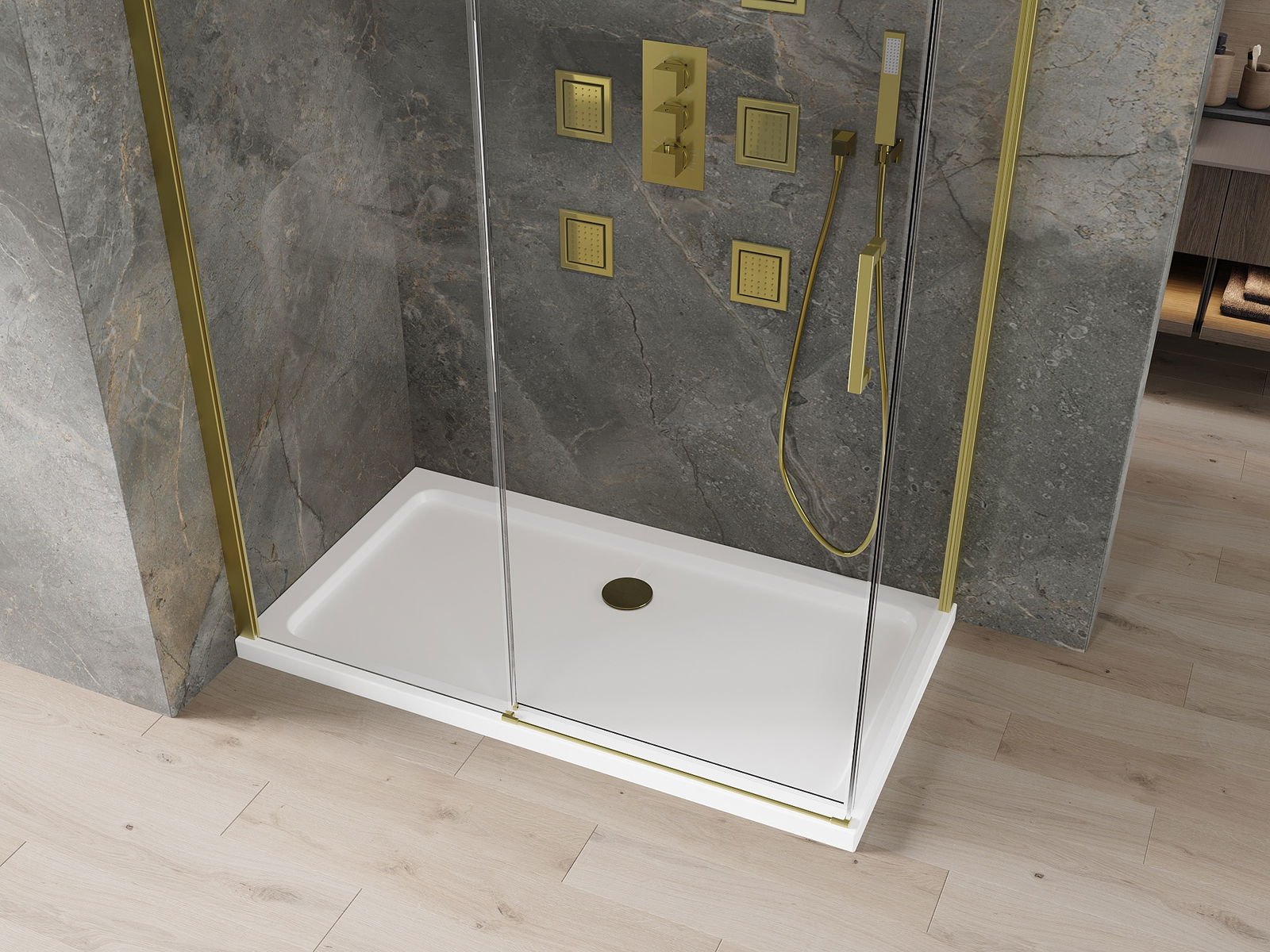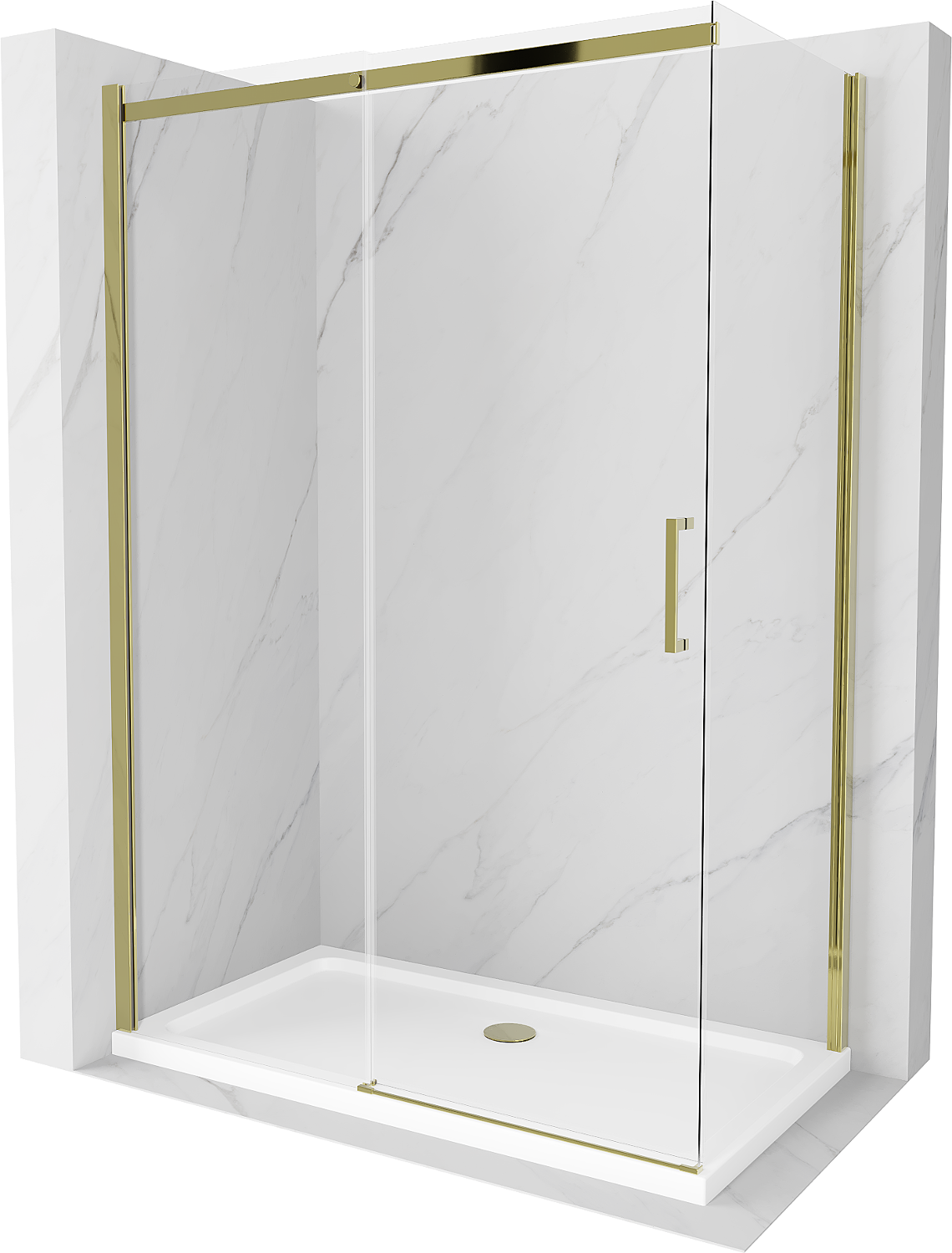 Mexen Omega sliding shower cabin 130 x 70 cm, transparent, gold + Flat tray - 825-130-070-50-00-4010