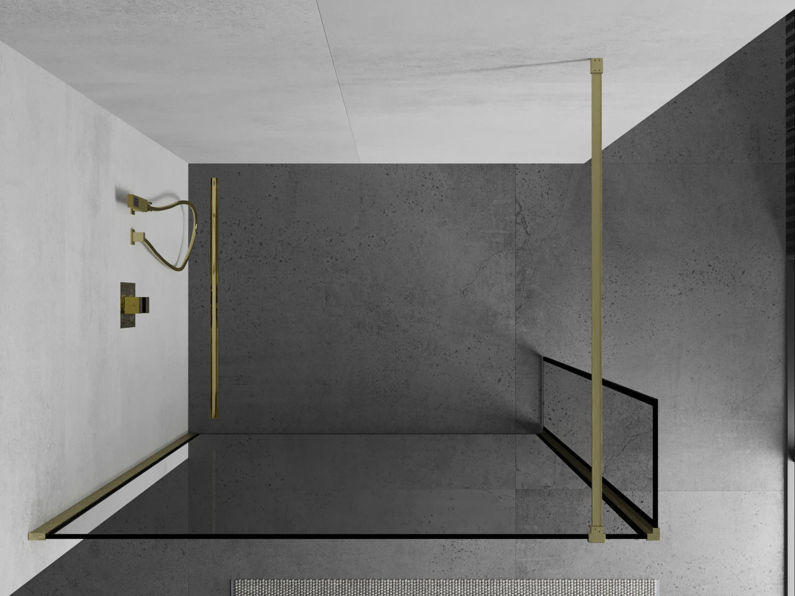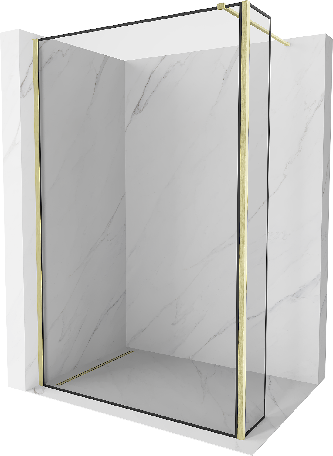 Mexen Kioto Shower Wall Walk-in 120 x 40 cm, Black Frame, Brushed Gold - 800-120-212-55-70-040