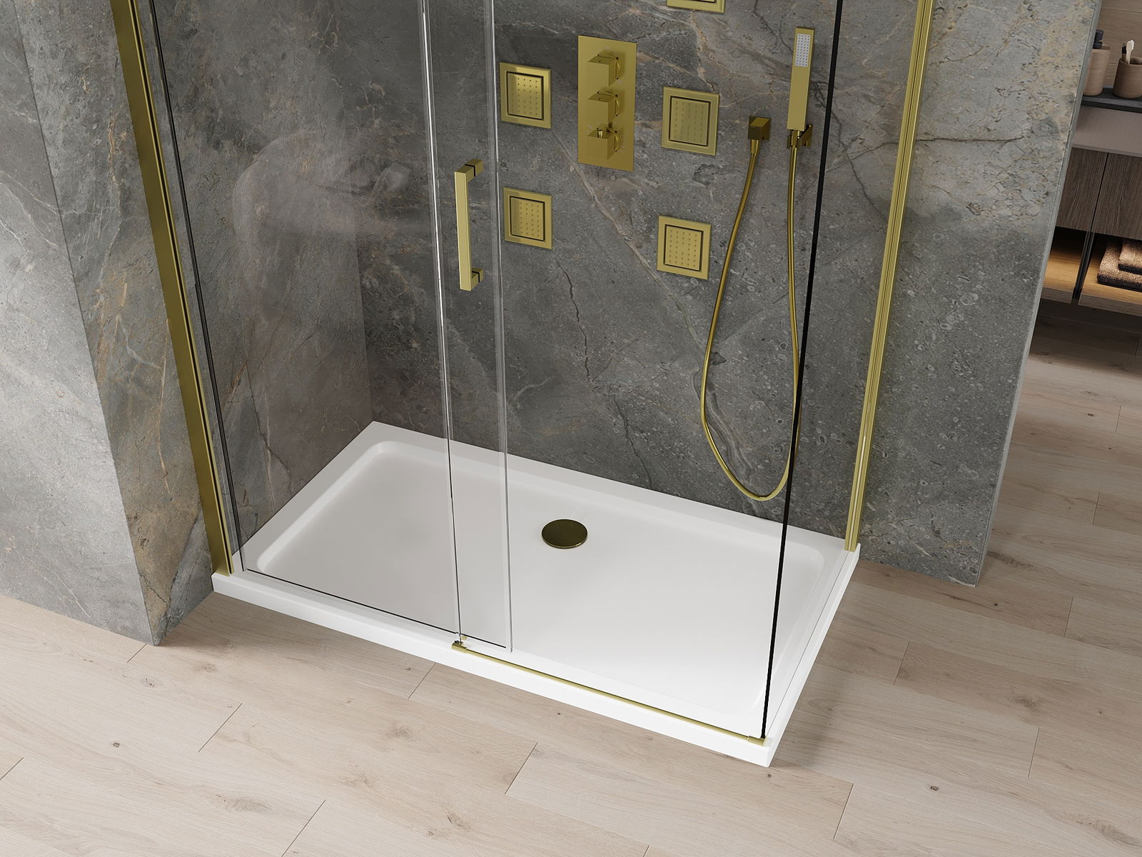 Mexen Omega sliding shower cabin 140 x 70 cm, transparent, gold + Flat tray - 825-140-070-50-00-4010