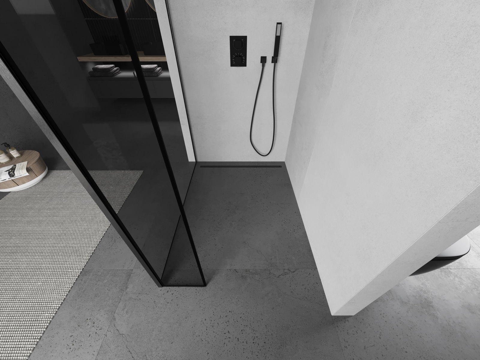 Mexen Kioto Walk-in Shower Wall 150 x 30 cm, Black Frame, Brushed Gun Gray - 800-150-212-66-70-030