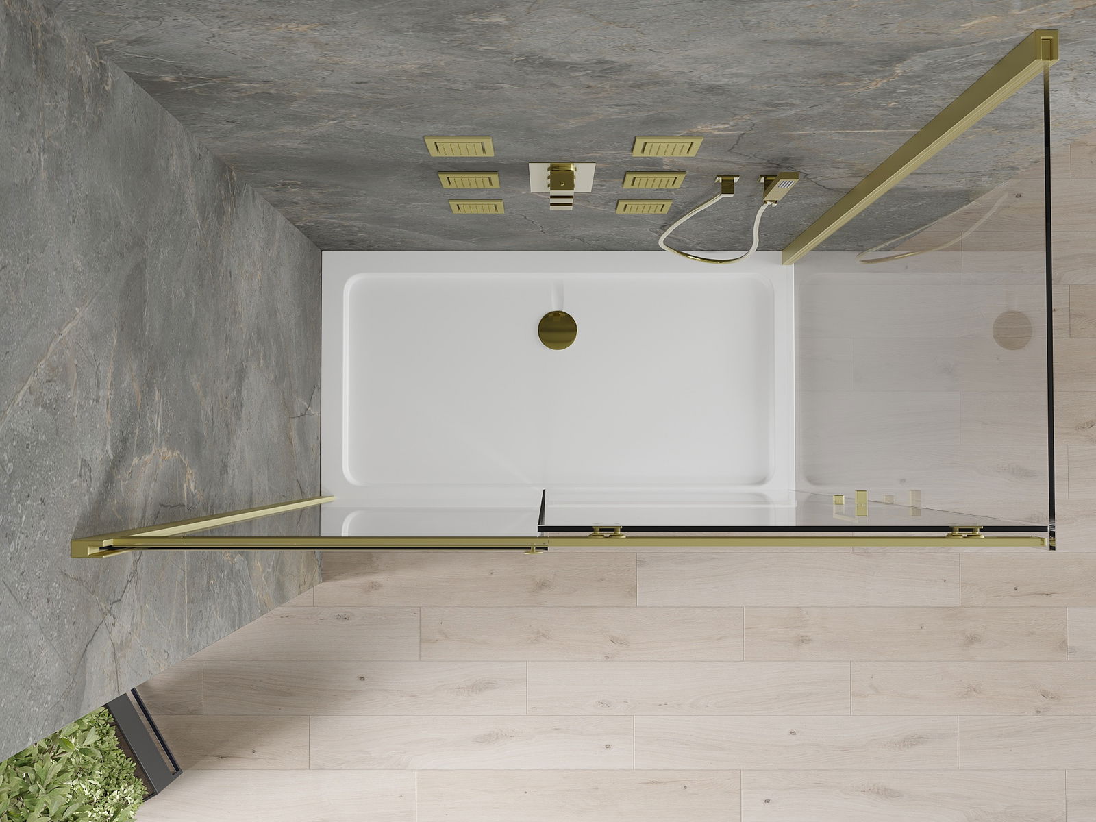 Mexen Omega sliding shower cabin 140 x 80 cm, transparent, gold + Flat tray - 825-140-080-50-00-4010