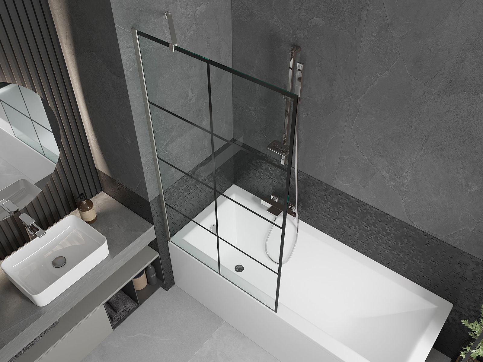 Effective protection against water spilling during bathing. The screen has seals that perfectly fit the glass surface and the edge of the bathtub. A functional solution ensuring safety and easy maintenance of cleanliness.