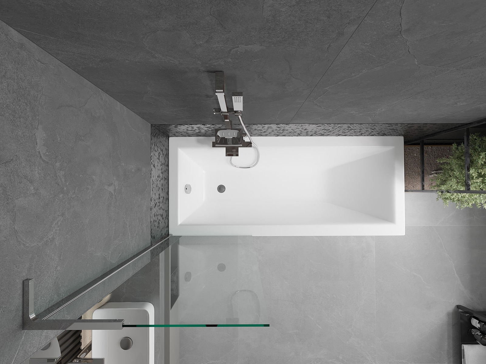 Effective protection against water spilling during bathing. The screen has seals that perfectly fit the glass surface and the edge of the bathtub. A functional solution ensuring safety and easy maintenance of cleanliness.