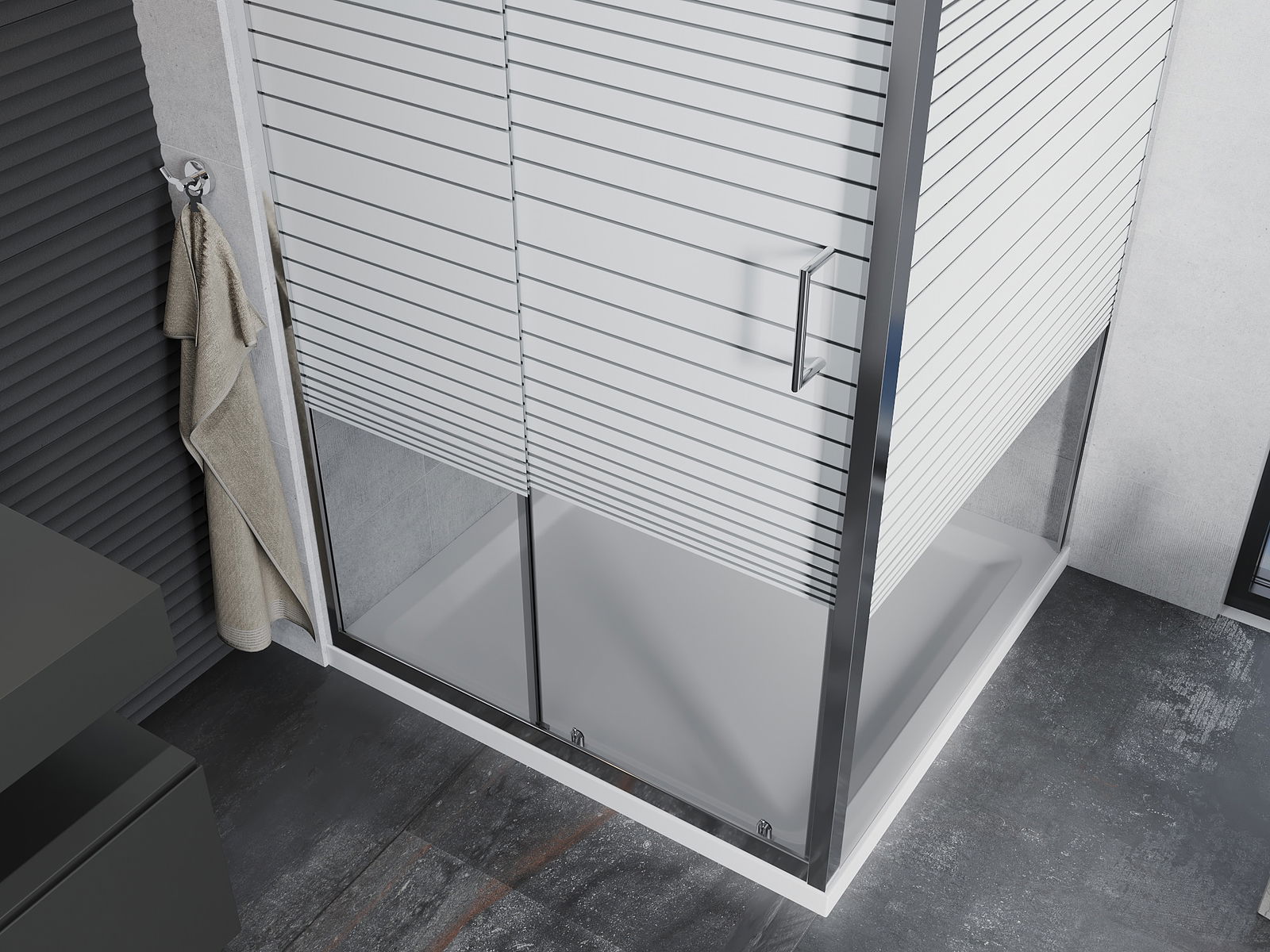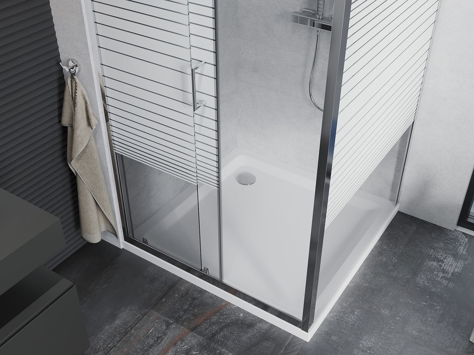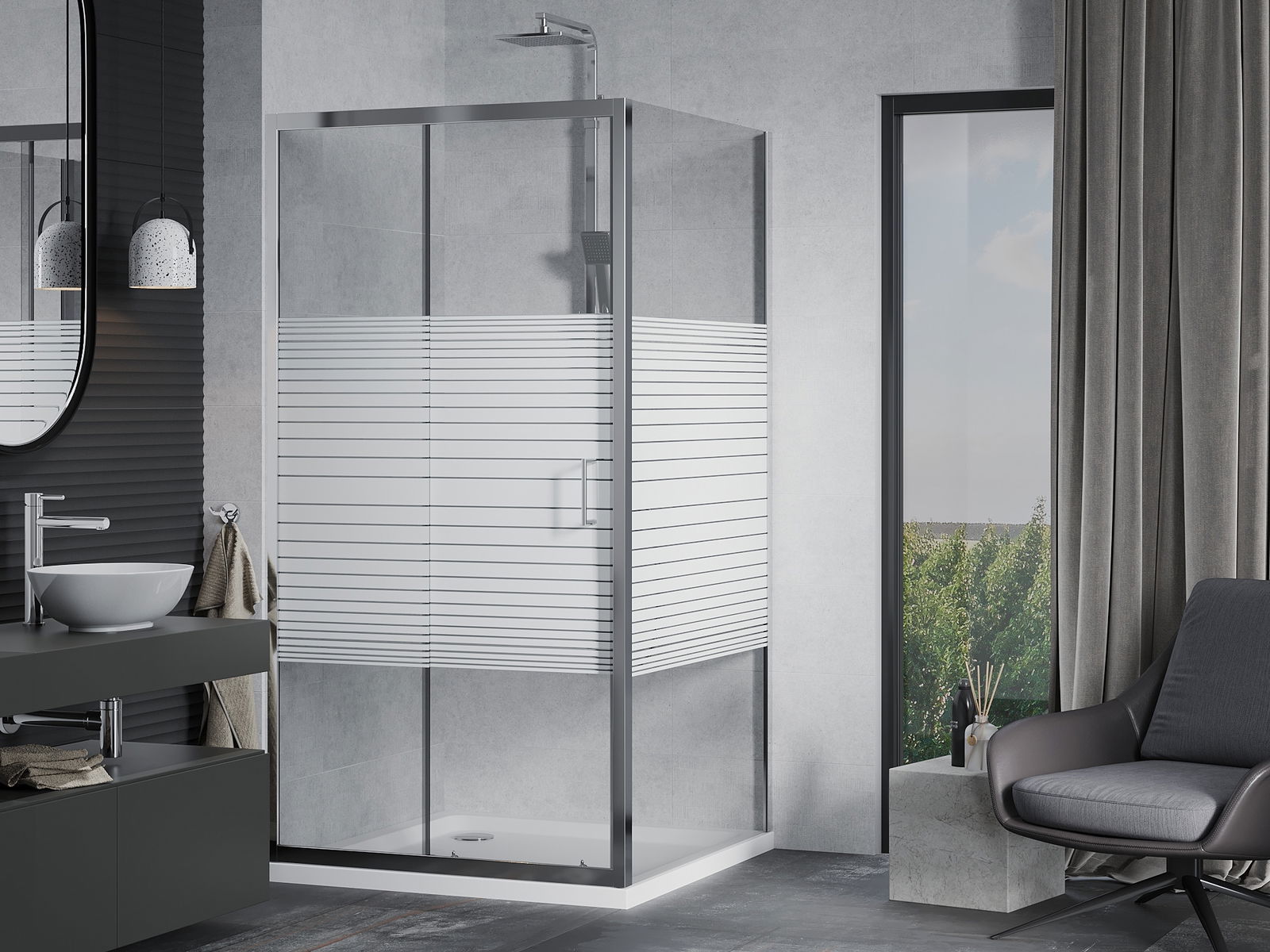 Mexen Apia sliding shower cabin 90 x 90 cm, white stripes, chrome + Flat tray - 840-090-090-01-20-4010