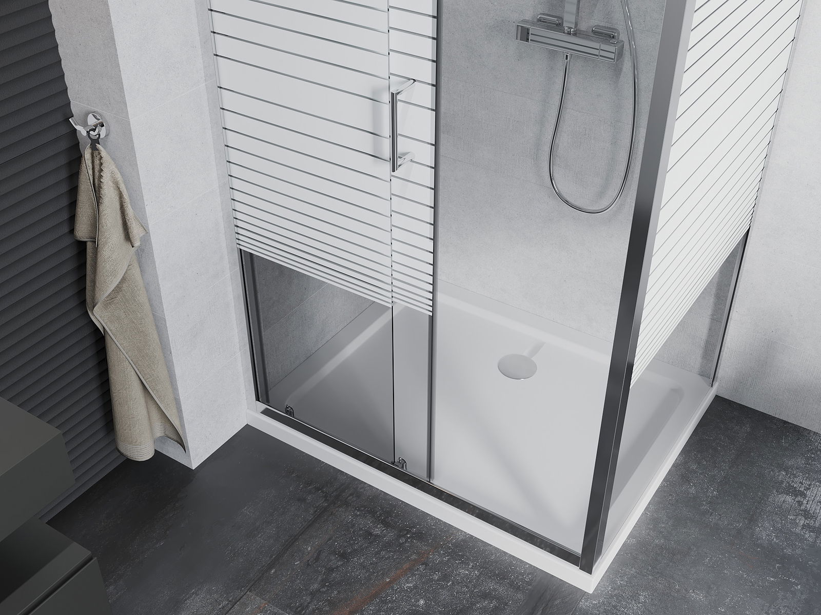 Mexen Apia Sliding shower enclosure 110 x 80 cm, white stripes, chrome + Flat shower tray - 840-110-080-01-20-4010