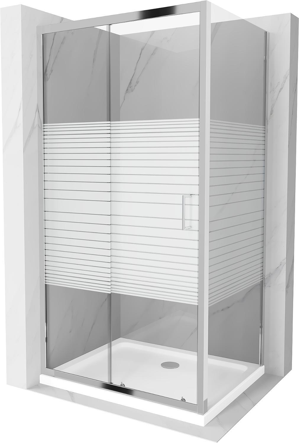 Mexen Apia sliding shower enclosure 110 x 100 cm, white stripes, chrome + Flat tray - 840-110-100-01-20-4010