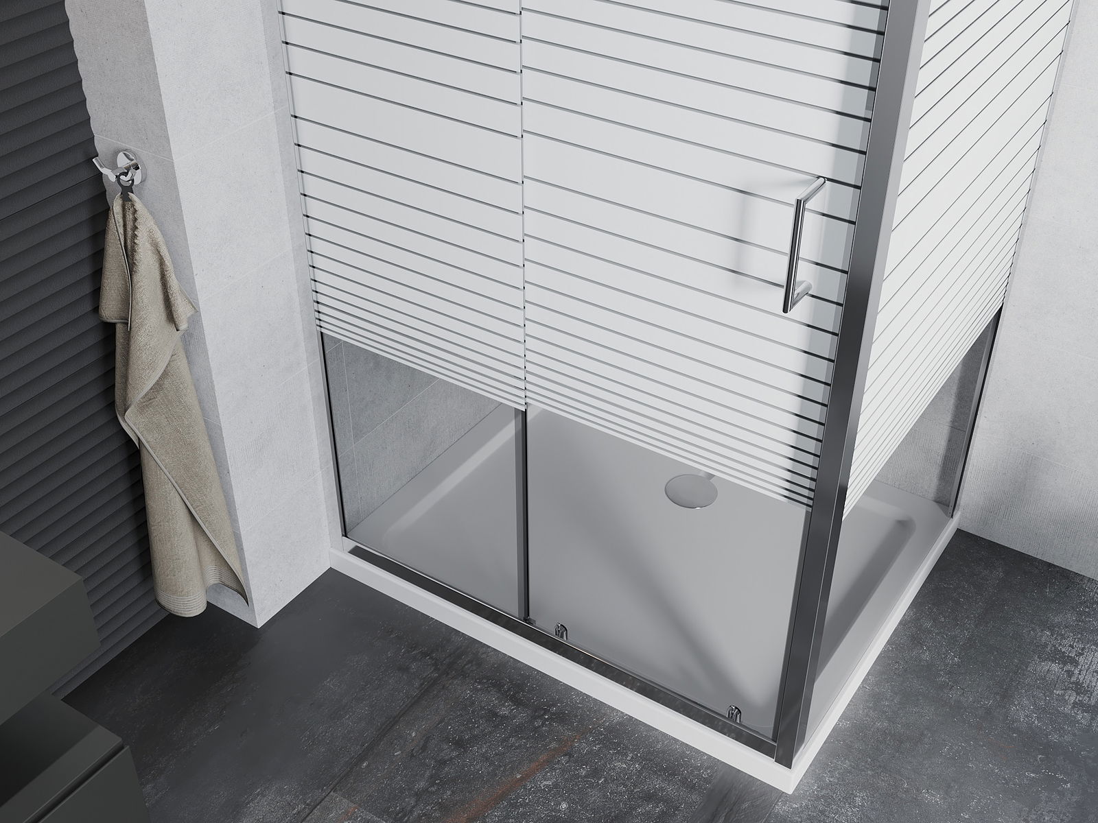 A handy and comfortable handle made from durable and resistant metal. Its trendy shape combined with a finish matched to the colour of the profiles gives the whole a modern and stylish look, highlighting the aesthetics of every bathroom.
