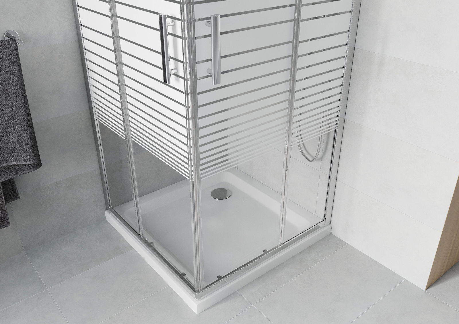 A handy and comfortable handle made from durable and resistant metal. Its trendy shape combined with a finish matched to the colour of the profiles gives the whole a modern and stylish look, highlighting the aesthetics of every bathroom.