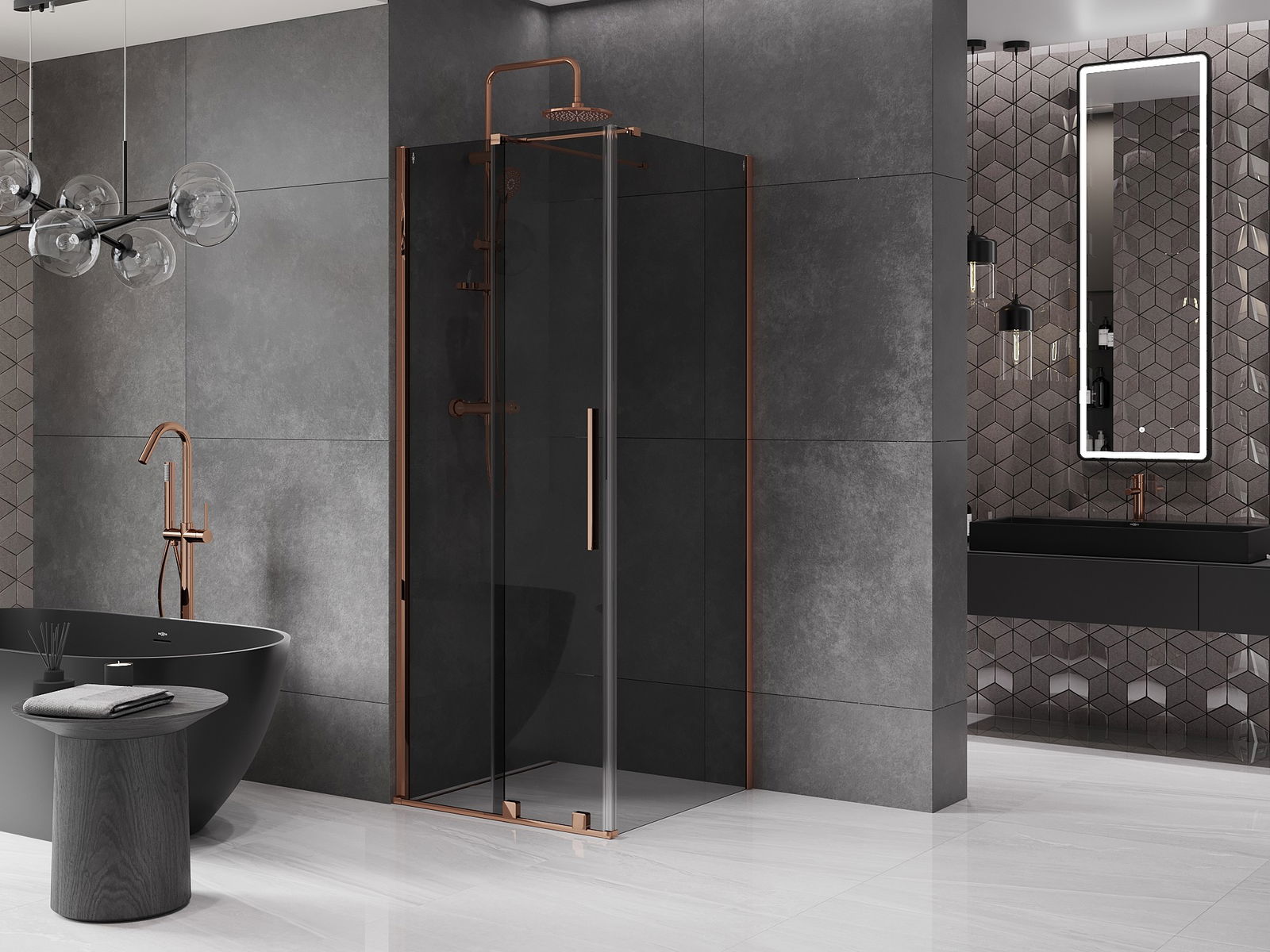 Mexen Velar sliding shower enclosure 110 x 110 cm, graphite, rose gold - 871-110-110-41-60