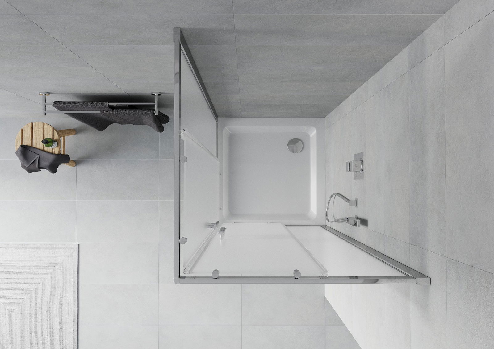 The handy and comfortable handle is made of durable and resistant metal. The fashionable shape, combined with a finish matching the color of the profiles, gives the whole a modern and stylish look, emphasizing the aesthetics of any bathroom.