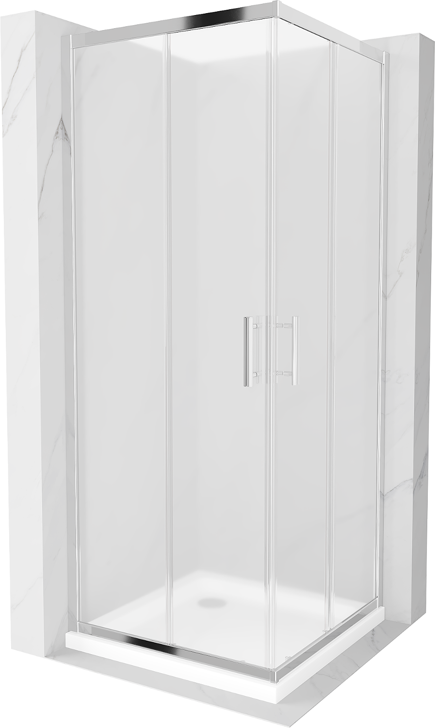 Mexen Rio Square Shower Enclosure 70 x 70 cm, Frost, Chrome + Flat Tray, White - 860-070-070-01-30-4010
