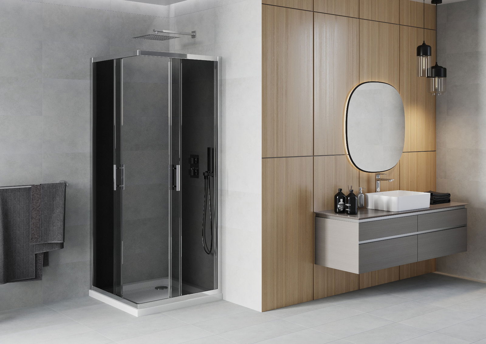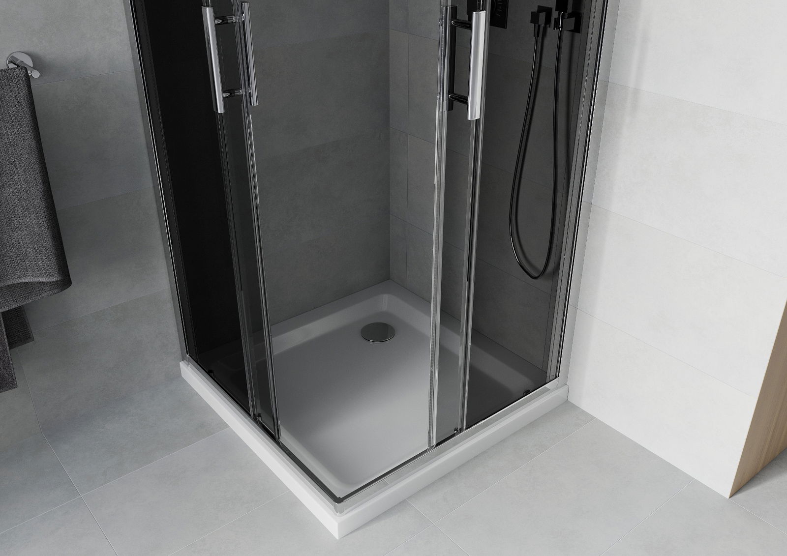 The handy and comfortable handle is made of durable and resistant metal. The fashionable shape, combined with a finish matching the color of the profiles, gives the whole a modern and stylish look, emphasizing the aesthetics of any bathroom.