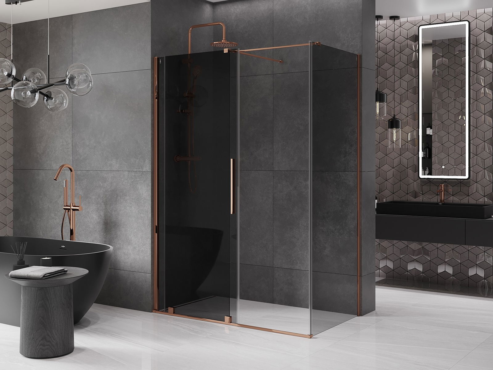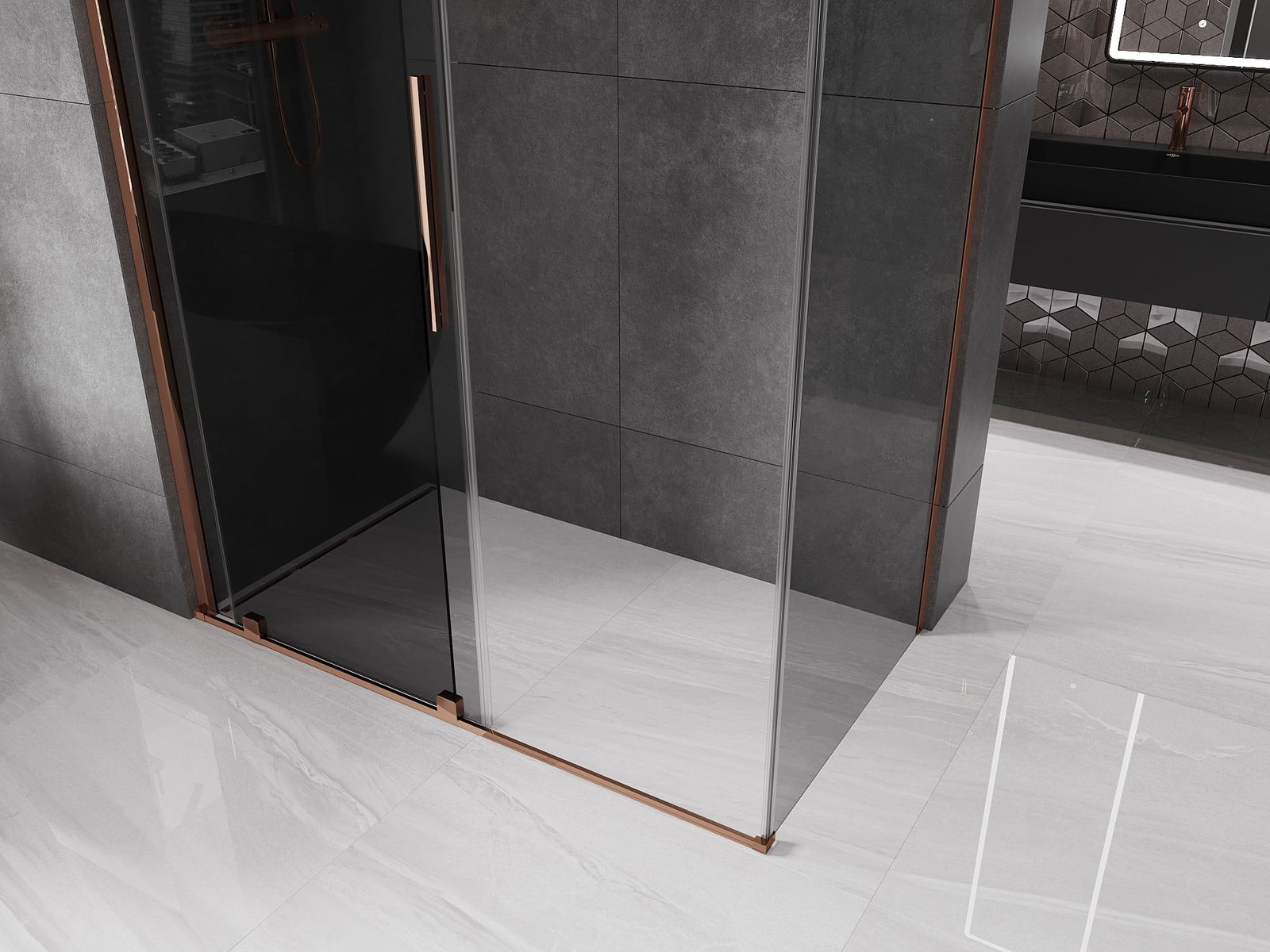 Mexen Velar sliding shower cabin 150 x 80 cm, graphite, rose gold - 871-150-080-41-60