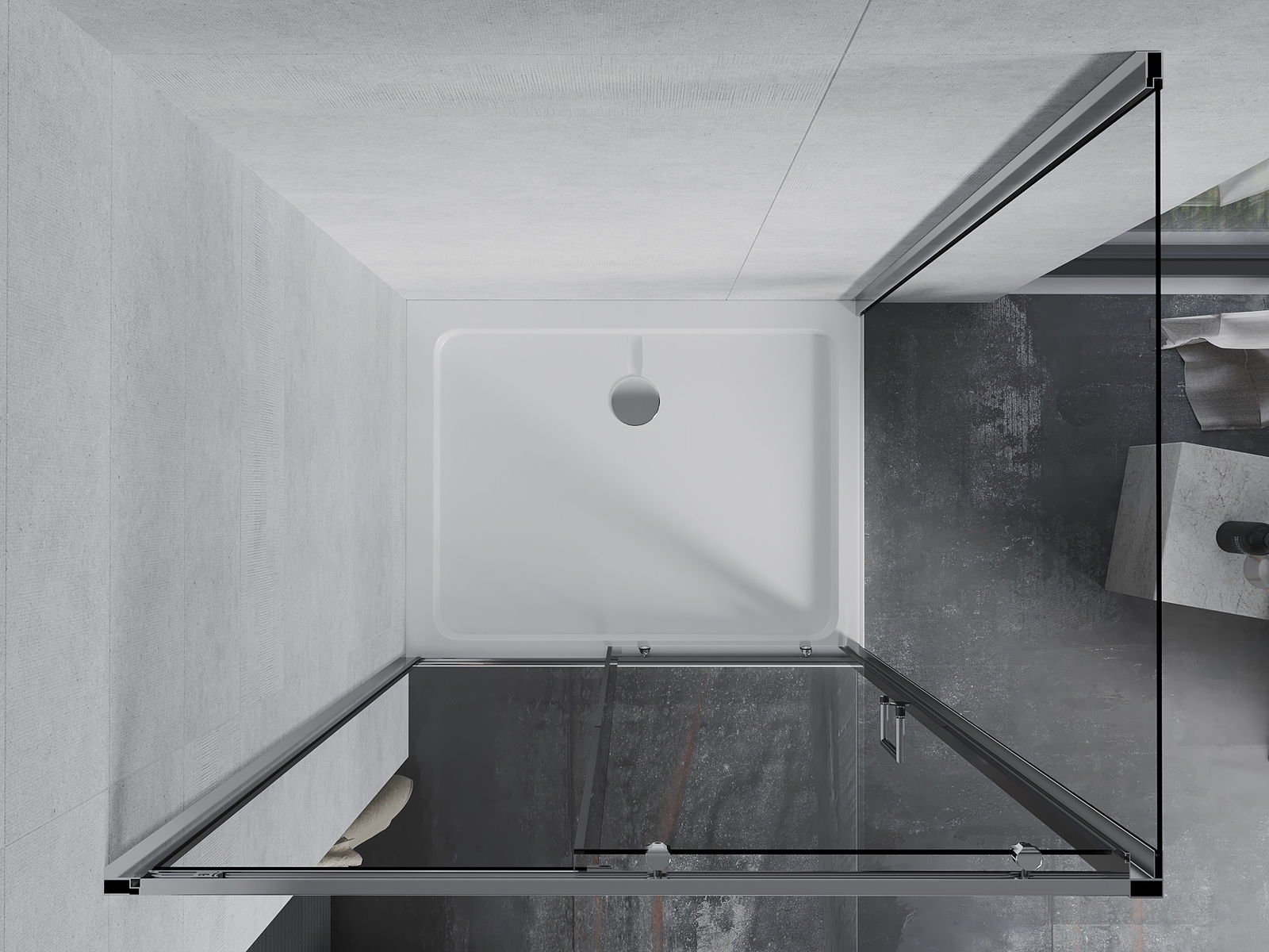 Mexen Apia sliding shower enclosure 140 x 100 cm, transparent, chrome + Flat shower tray - 840-140-100-01-00-4010