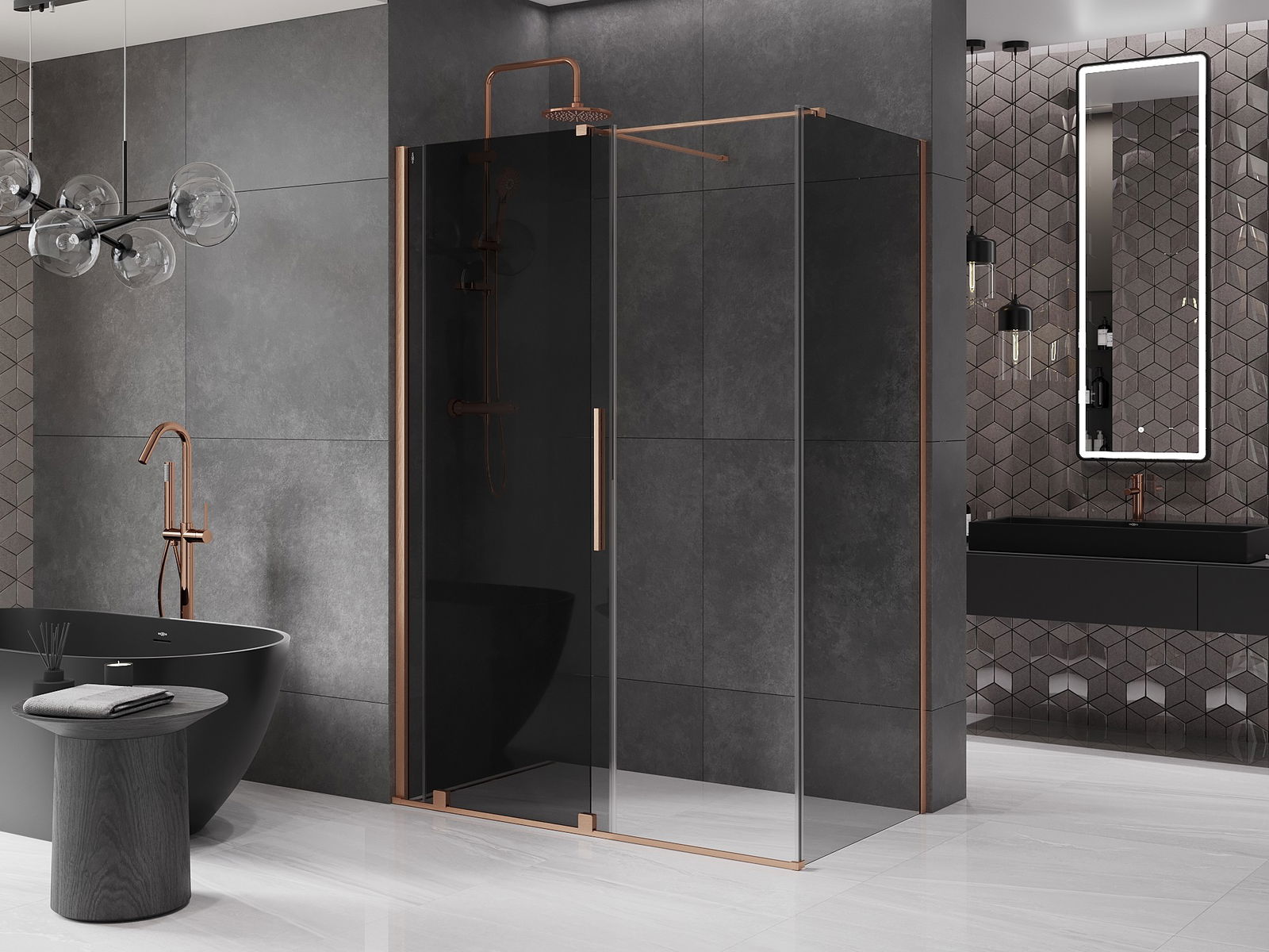 Mexen Velar sliding shower enclosure 140 x 85 cm, graphite, brushed copper - 871-140-085-41-65
