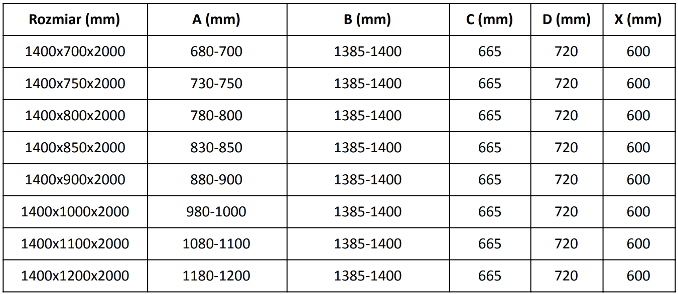 Size: 140x100 cm (door 140 cm, wall 100 cm)