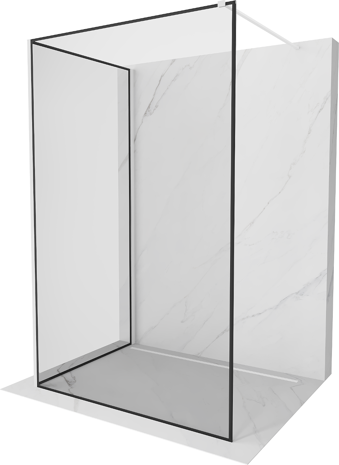 Mexen Kioto walk-in shower wall 130 x 70 cm, black frame, white - 800-130-212-20-70-070