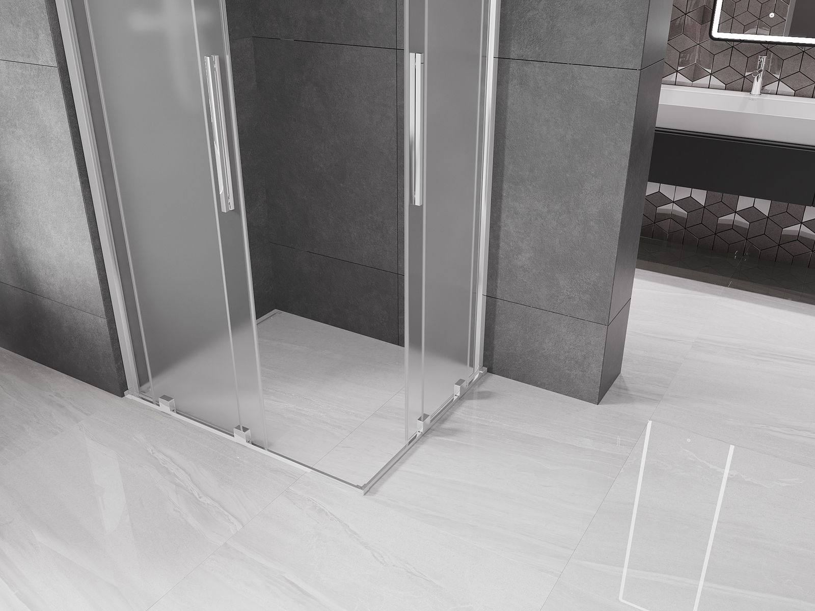 Mexen Velar Duo sliding shower enclosure 100 x 90 cm, frost, chrome - 871-100-090-32-01