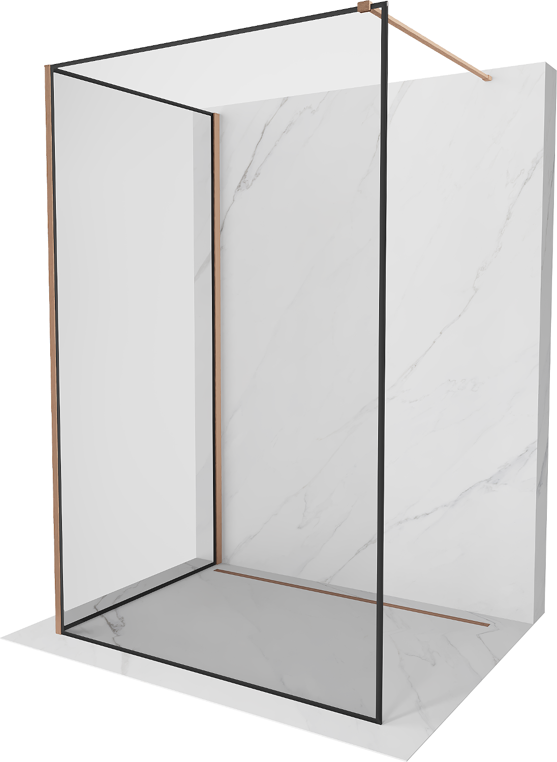 Mexen Kioto shower screen Walk-in 100 x 100 cm, black frame, brushed copper - 800-100-212-65-70-100