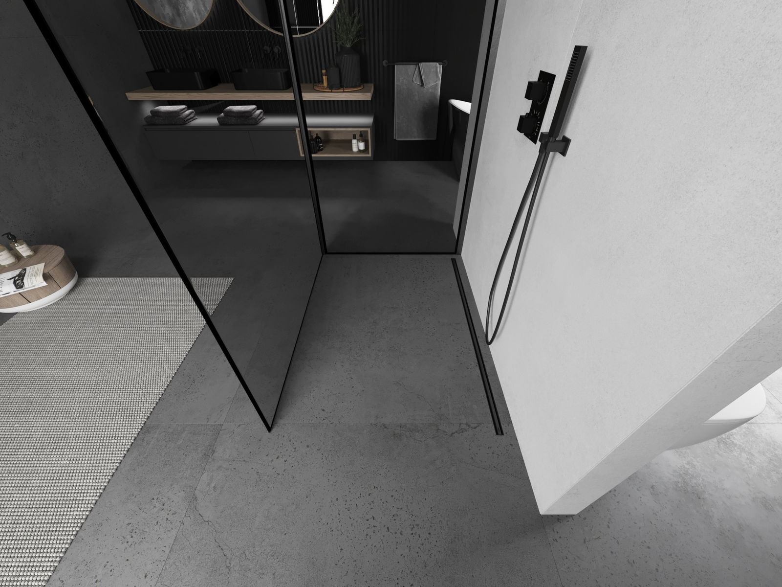 Mexen Kioto Walk-in Shower Wall 100 x 70 cm, Black Frame, Brushed Gun Gray - 800-100-212-66-70-070