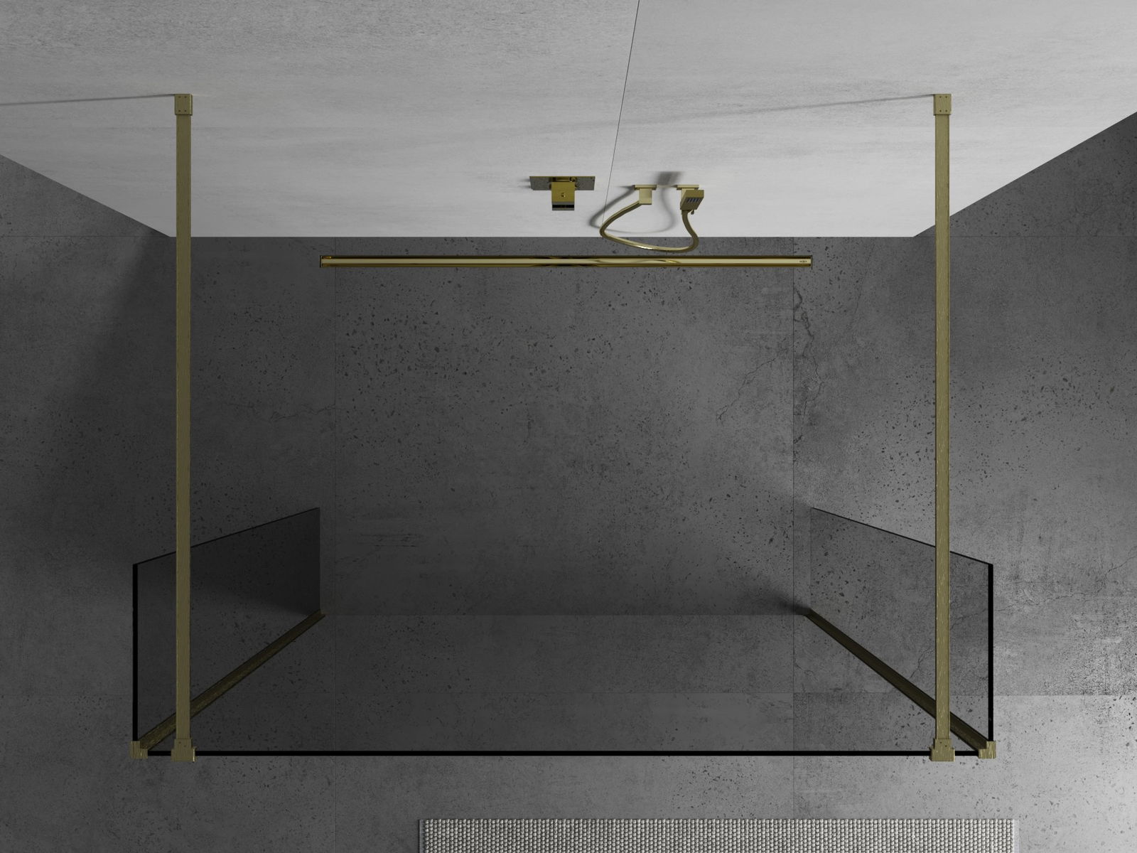 Mexen Kioto free-standing shower wall 145 x 30 x 30 cm, transparent, brushed gold - 800-145-030-222-55-00-030