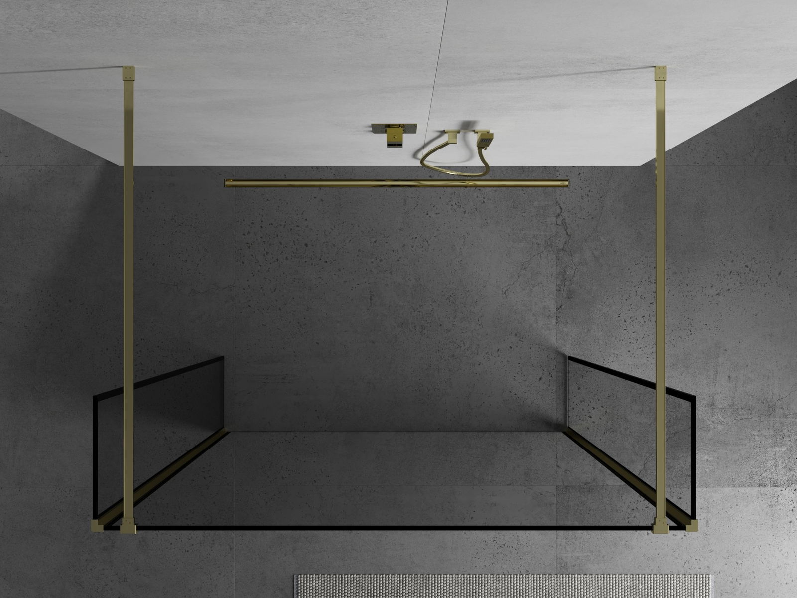Mexen Kioto freestanding shower wall 100 x 30 x 30 cm, black frame, gold - 800-100-030-222-50-70-030