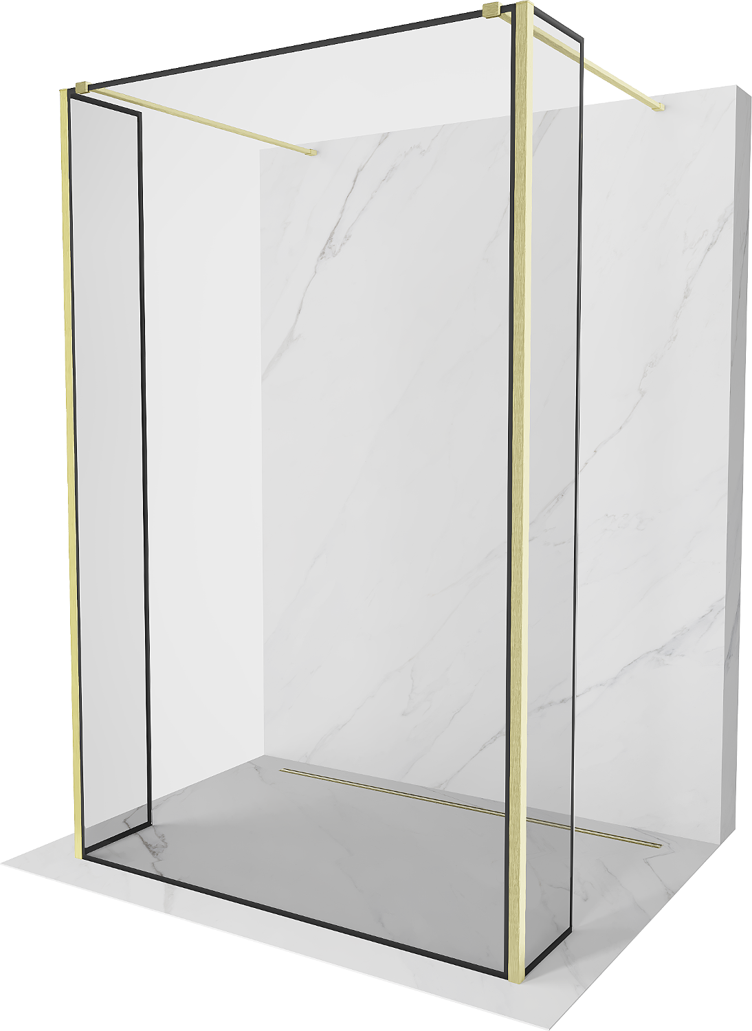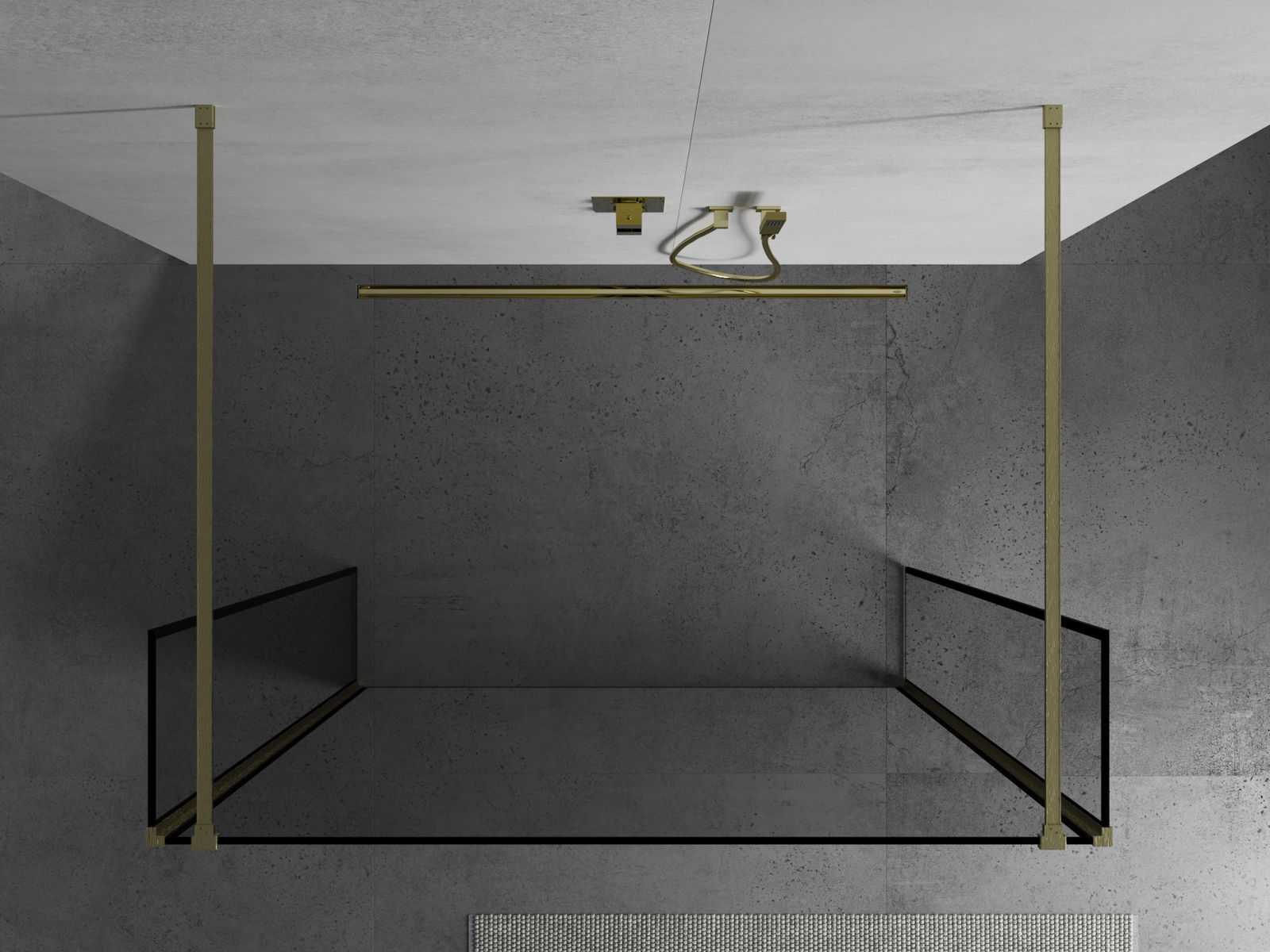 Mexen Kioto Freestanding shower wall 110 x 30 x 30 cm, black frame, brushed gold - 800-110-030-222-55-70-030