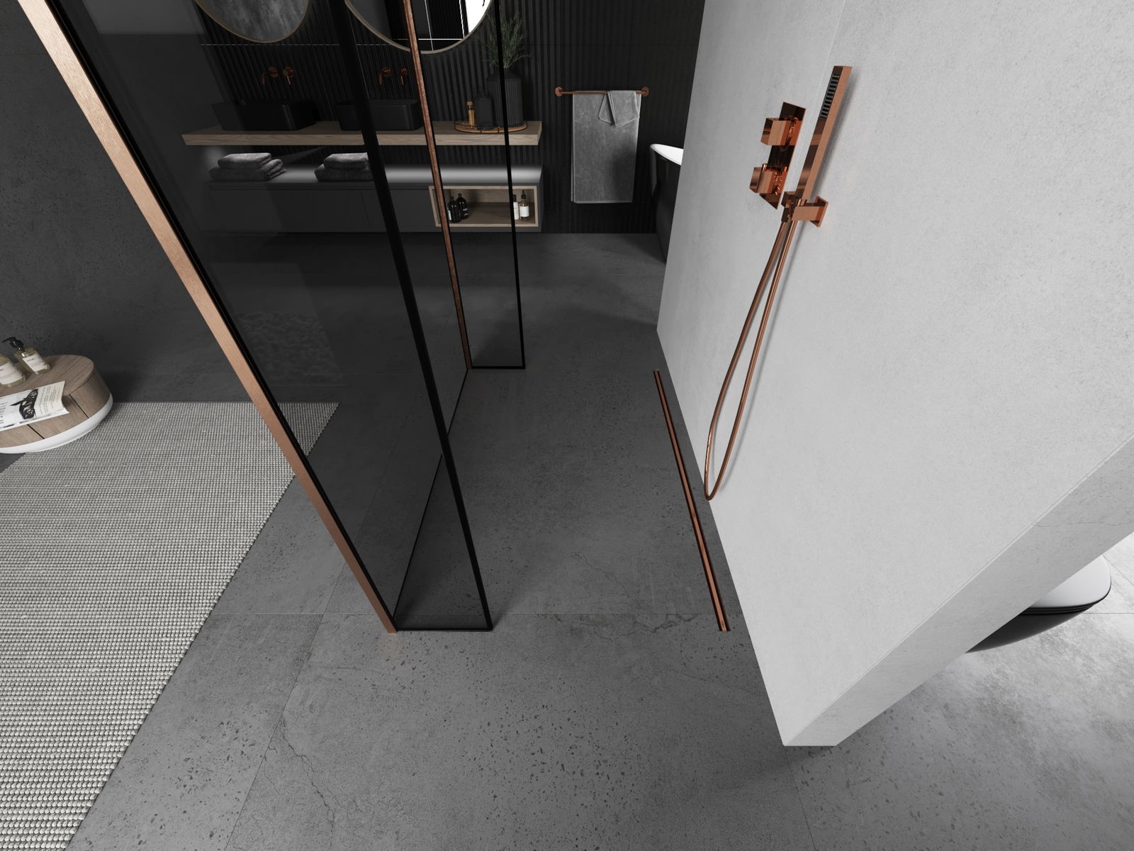 Mexen Kioto 120 x 30 x 30 cm Freestanding Shower Wall, Black Frame, Brushed Copper - 800-120-030-222-65-70-030