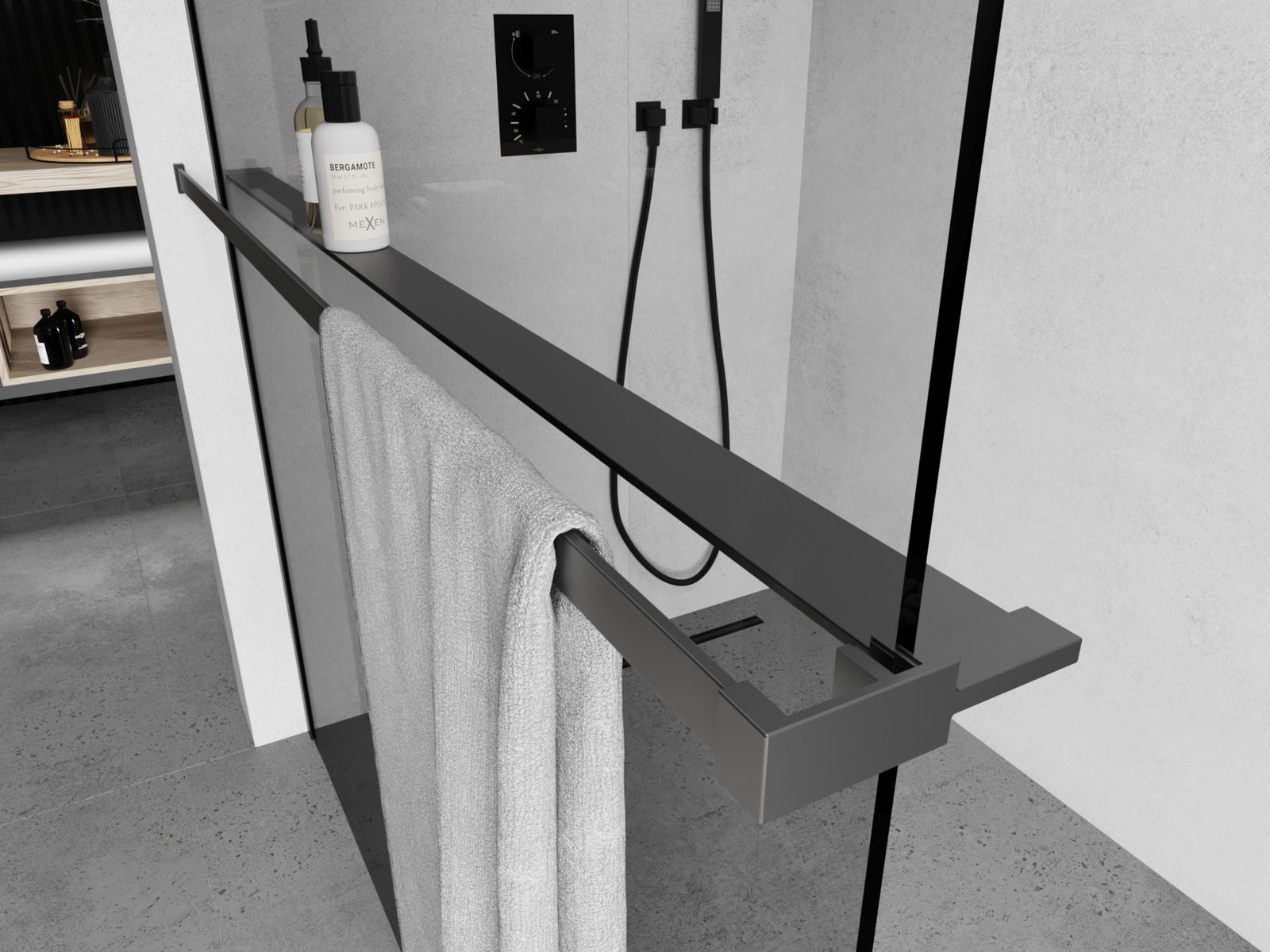 Mexen shelf for shower wall with towel rail, gun metal - 800-02-95