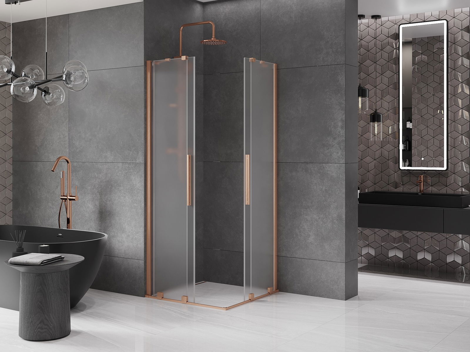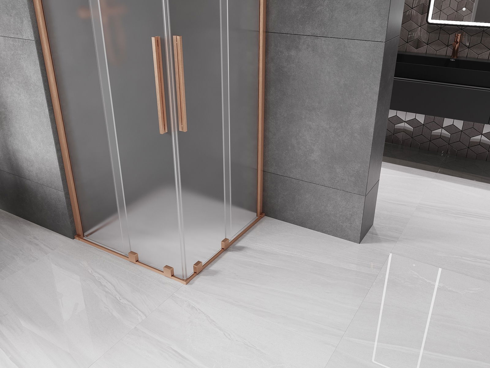 Mexen Velar Duo sliding shower enclosure 80 x 80 cm, frost, brushed copper - 871-080-080-32-65