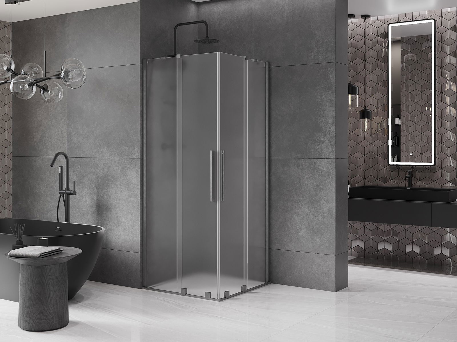 Mexen Velar Duo sliding shower cabin 100 x 100 cm, frosted, gun gray brushed - 871-100-100-32-66