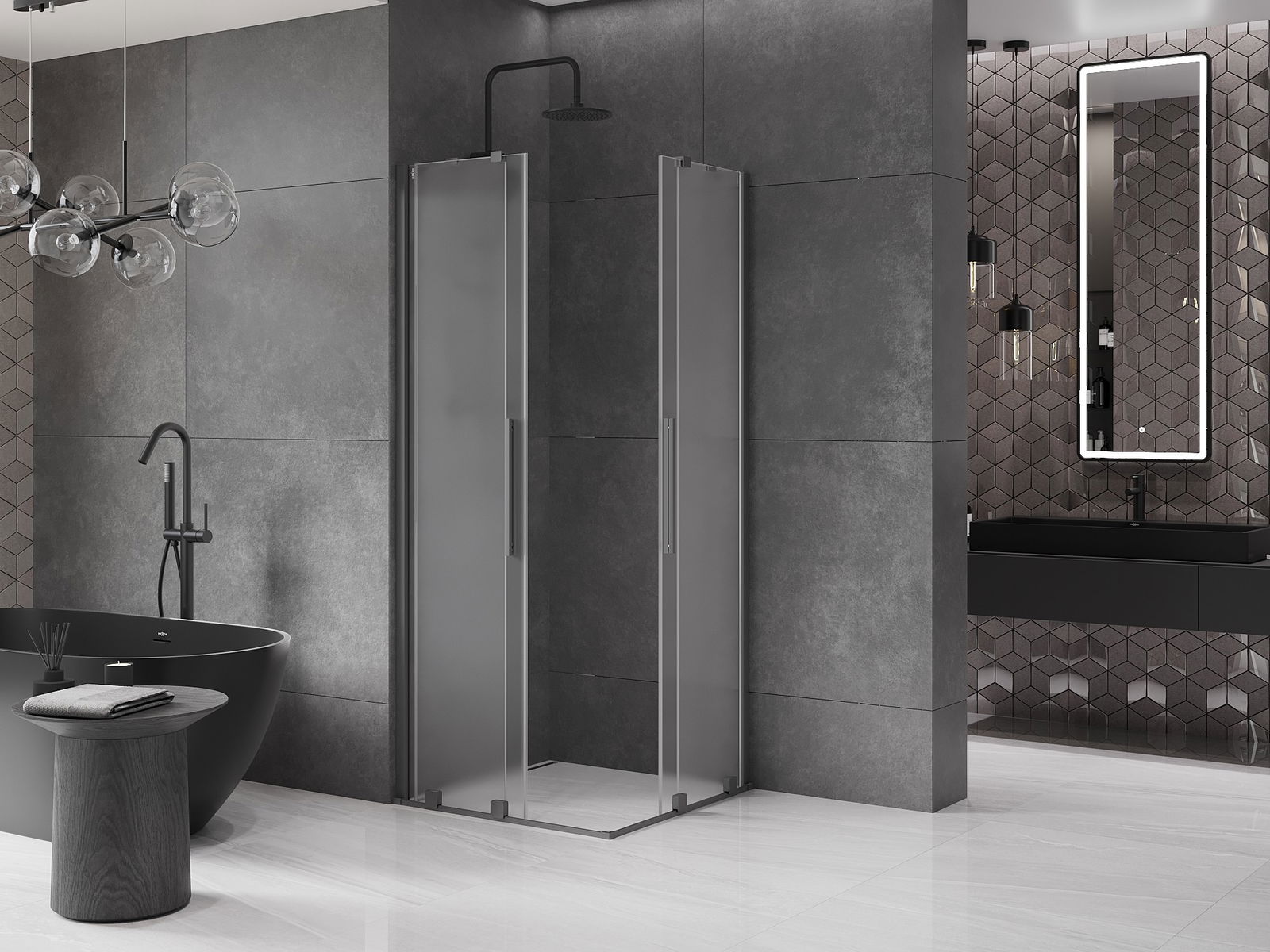 Mexen Velar Duo sliding shower enclosure 90 x 90 cm, frost, gun metal - 871-090-090-32-95