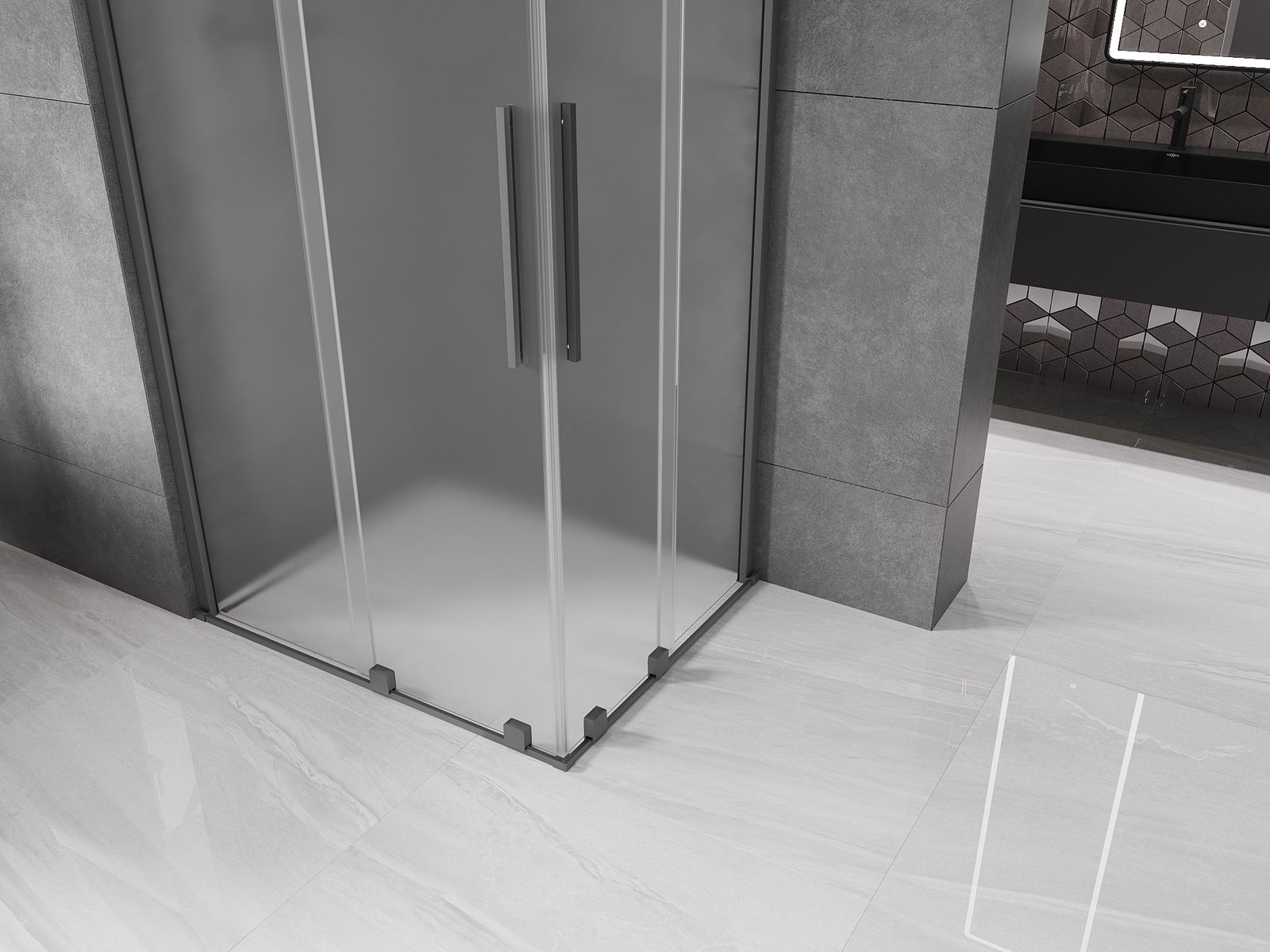 Mexen Velar Duo sliding shower enclosure 100 x 90 cm, frosted, gun metal - 871-100-090-32-95