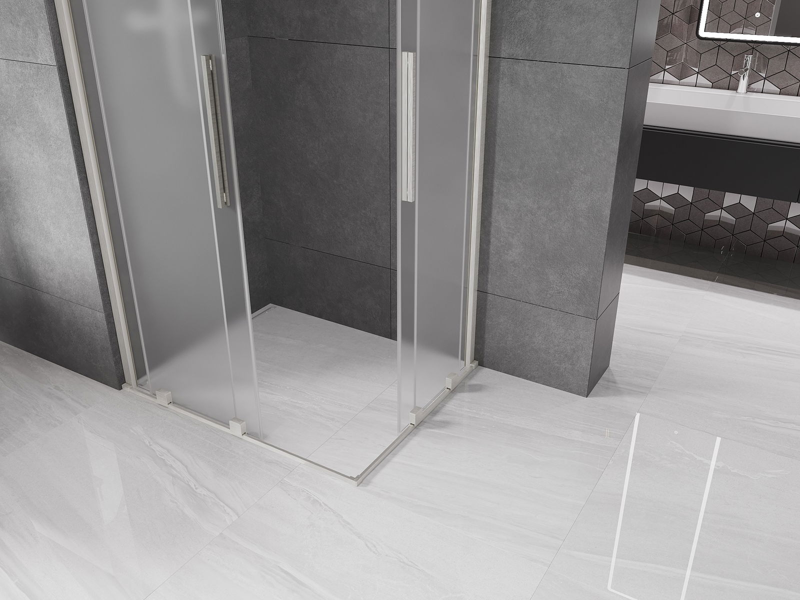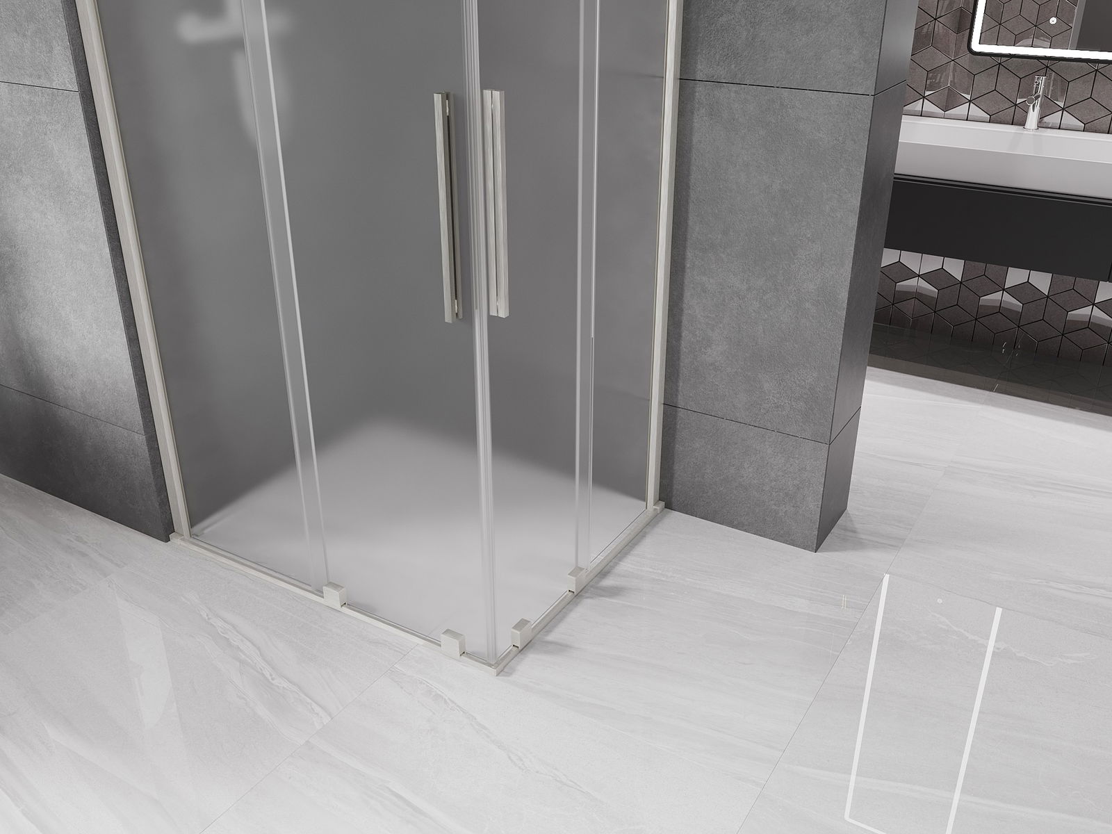 Mexen Velar Duo sliding shower enclosure 100 x 90 cm, frosted, brushed nickel - 871-100-090-32-97