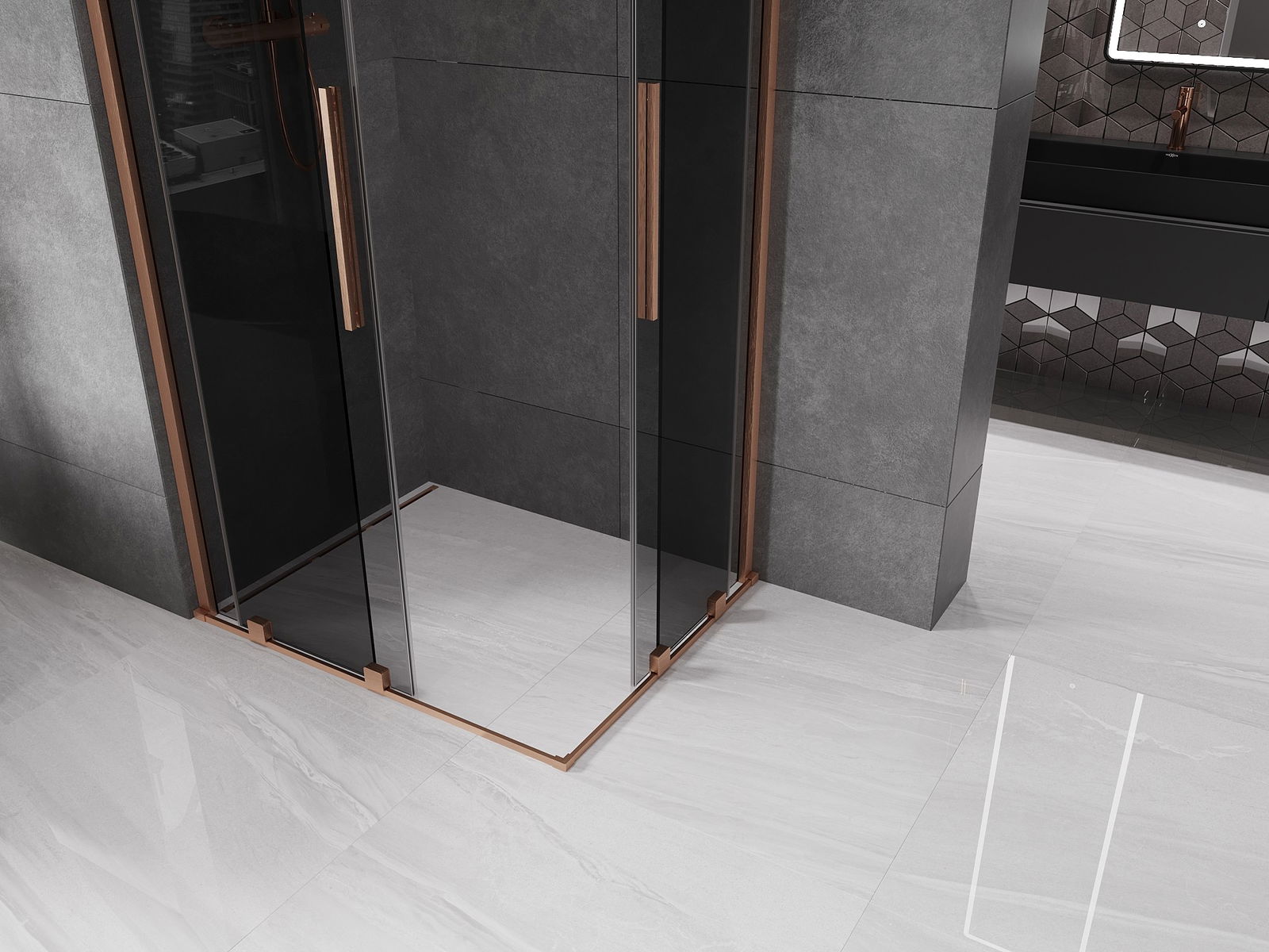 Mexen Velar Duo Sliding Shower Enclosure 90 x 80 cm, Graphite, Brushed Copper - 871-090-080-42-65